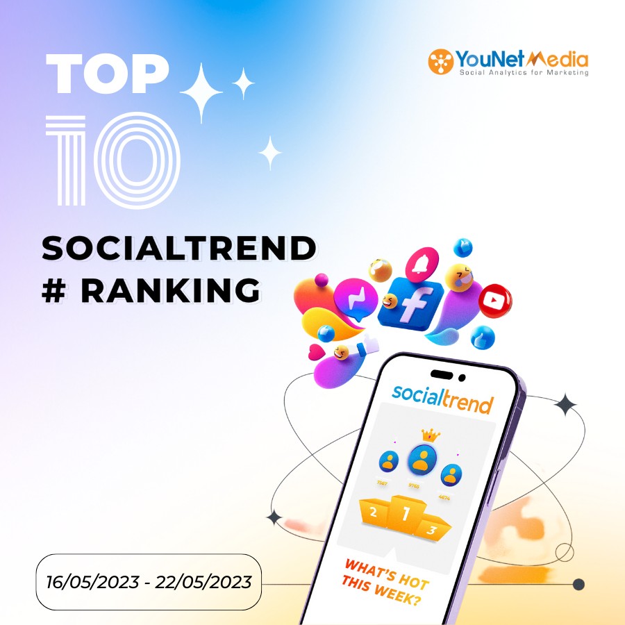 YouNet Media công bố Top 10 #SocialTrendRanking – Bảng xếp hạng 10 chủ đề thịnh hành nhất hàng tuần trên Mạng Xã Hội Việt Nam.
