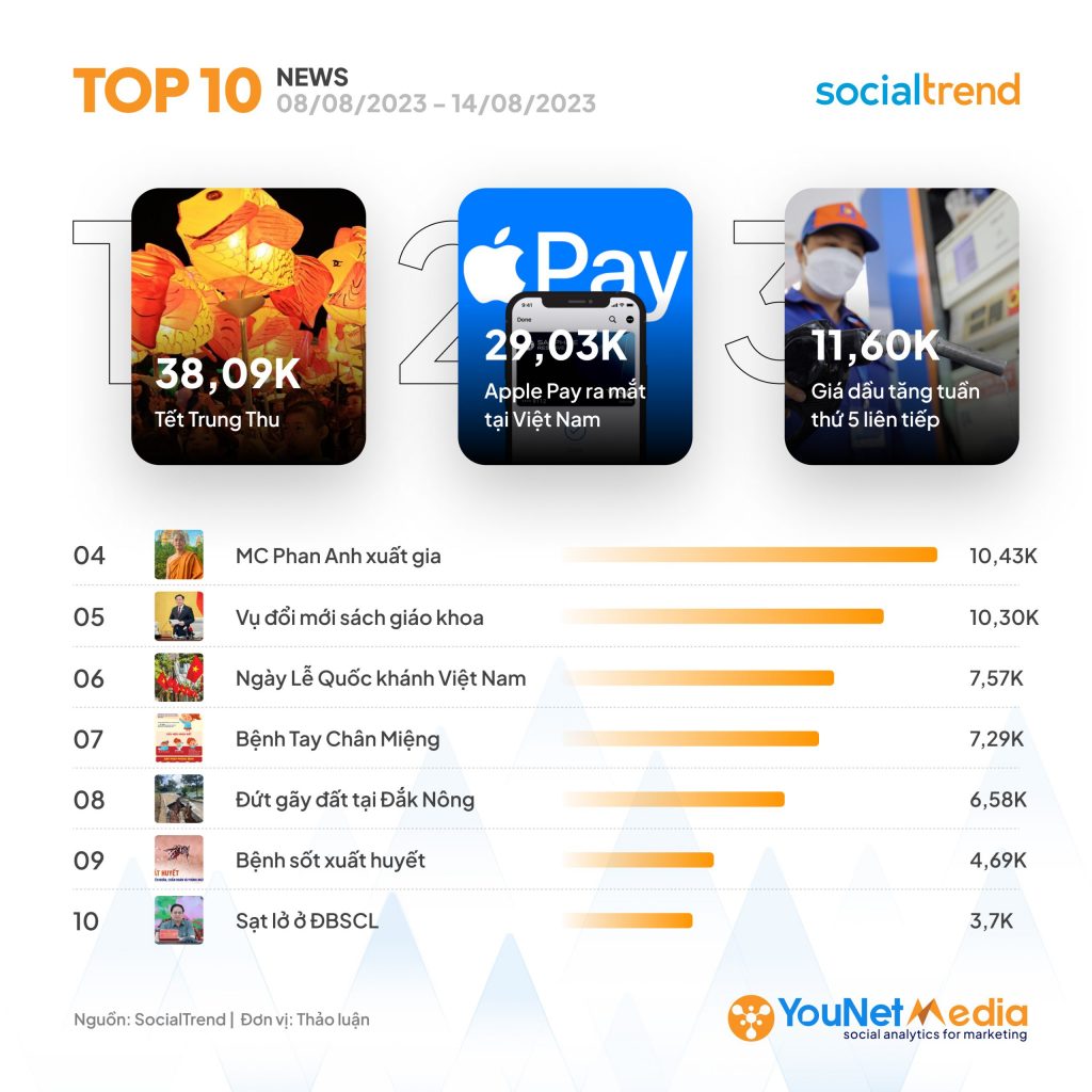 SocialTrend Ranking – Bảng xếp hạng chủ đề hot trên Mạng xã hội Việt tuần 08/08 – 14/08/2023