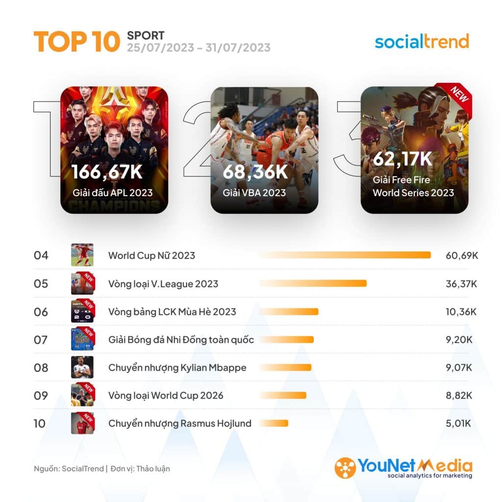Tổng quan Bảng Xếp hạng Top 10 SocialTrend Ranking tuần 25/07 – 31/07/2023.
