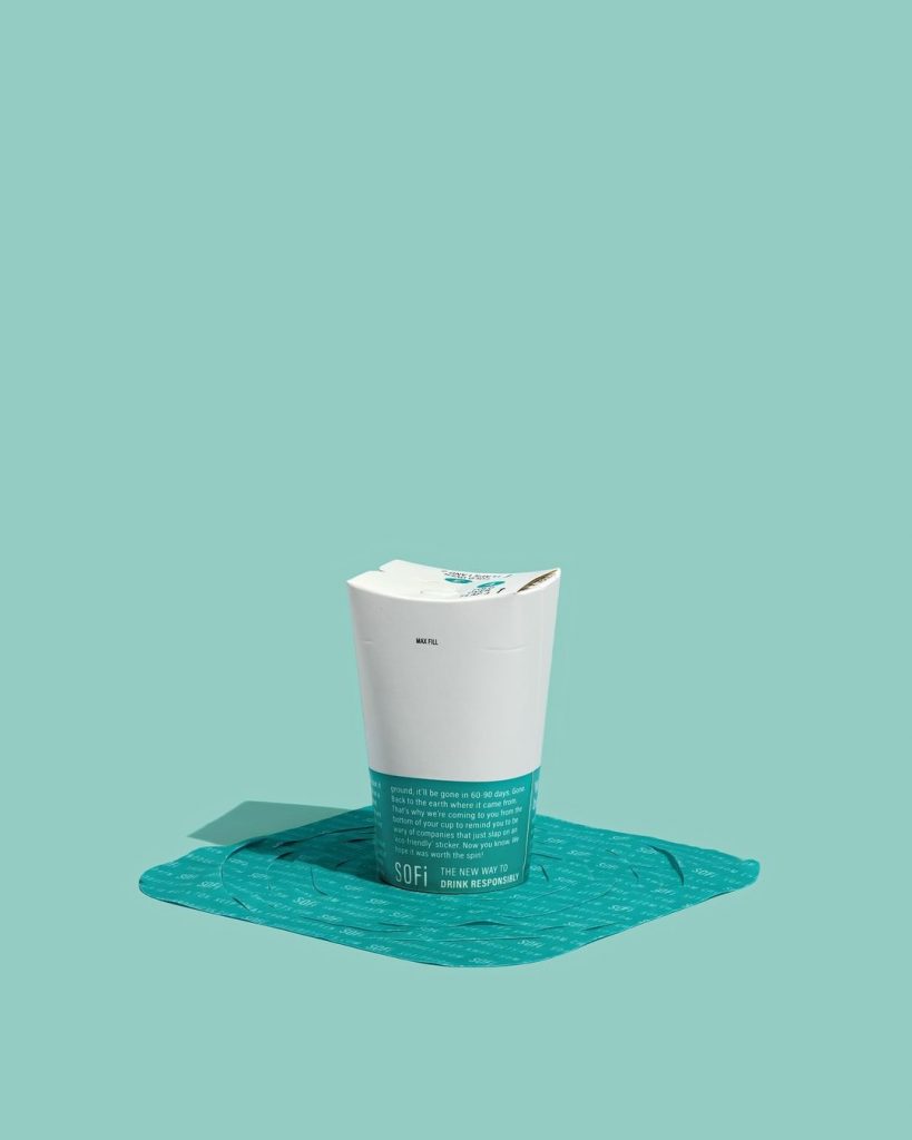 Có tên SOFi Hot Cup, đây là chiếc cốc dành cho đồ uống nóng có thể phân huỷ sinh học, 100% không chứa nhựa, và đặc biệt là không cần dùng đến nắp đậy riêng nhờ thiết kế sáng tạo với ba phần miệng cốc gập lại vào nhau để chống tràn.