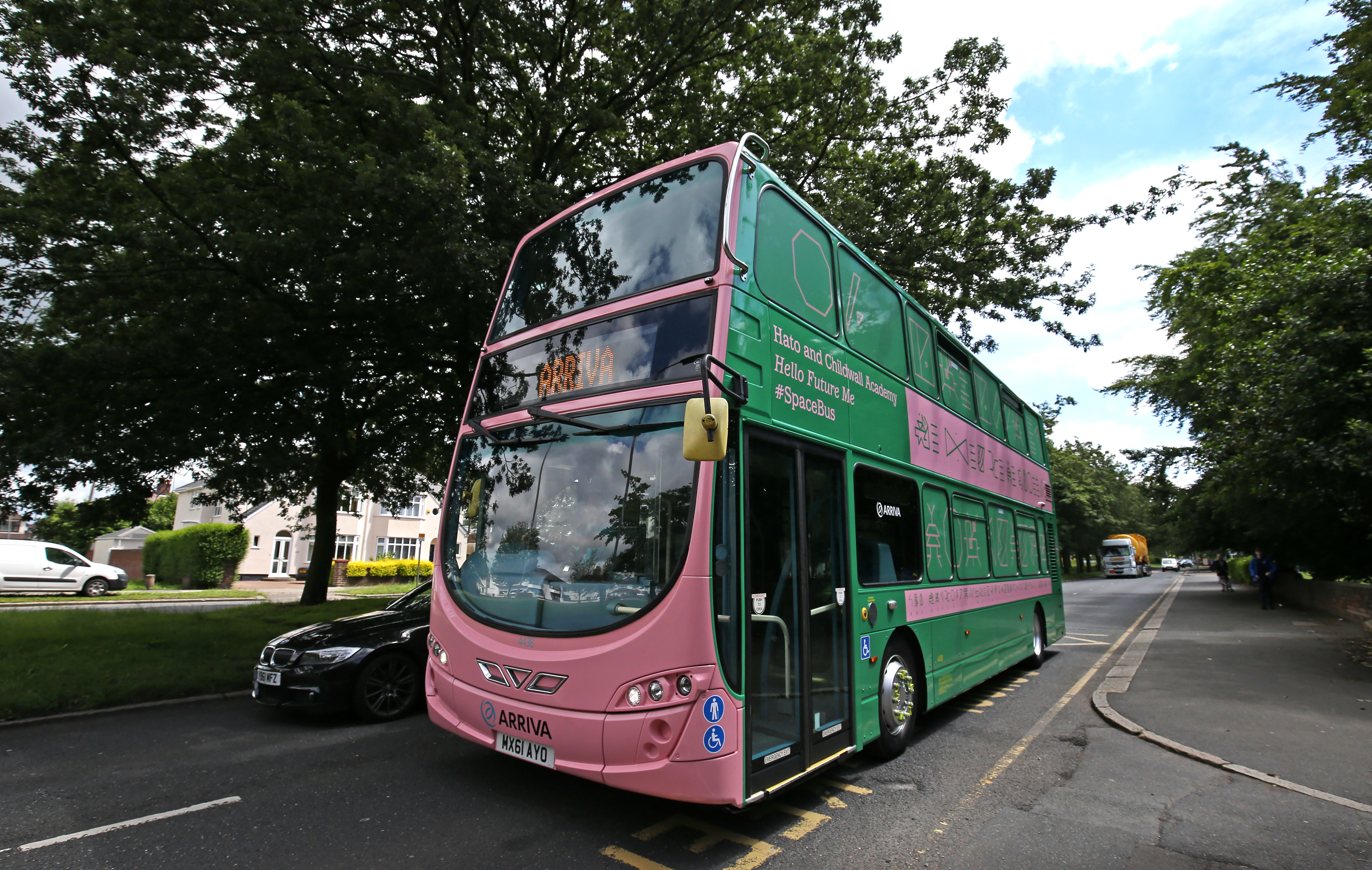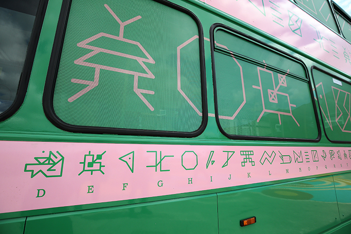 Xe bus mang những thông điệp được mã hóa từ không gian bên ngoài dành cho tương lai của Liverpool, cái mà trẻ em được khuyến khích giải thích và tạo ra thông qua một loạt các workshop. Những workshop sử dụng một công cụ vẽ kỹ thuật số để thiết kế một loạt các chữ tượng hình và letterforms mang tính tương lai, được phát triển bởi Hato.