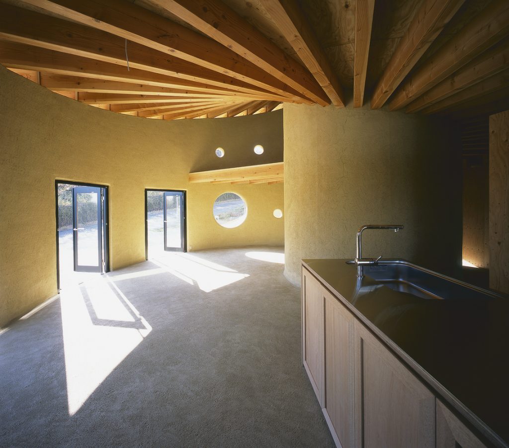 Giống như những ngôi nhà truyền thống của Nhật Bản, bề mặt trong và ngoài của các bức tường được làm bằng đất từ đảo Awaji. Sàn nhà được sử dụng một kỹ thuật có tên là Tat Tataki. Đây là một sàn đất cứng bao gồm đất, vôi và nước được đánh cho đến khi hóa rắn và có khả năng giảm chấn cao.