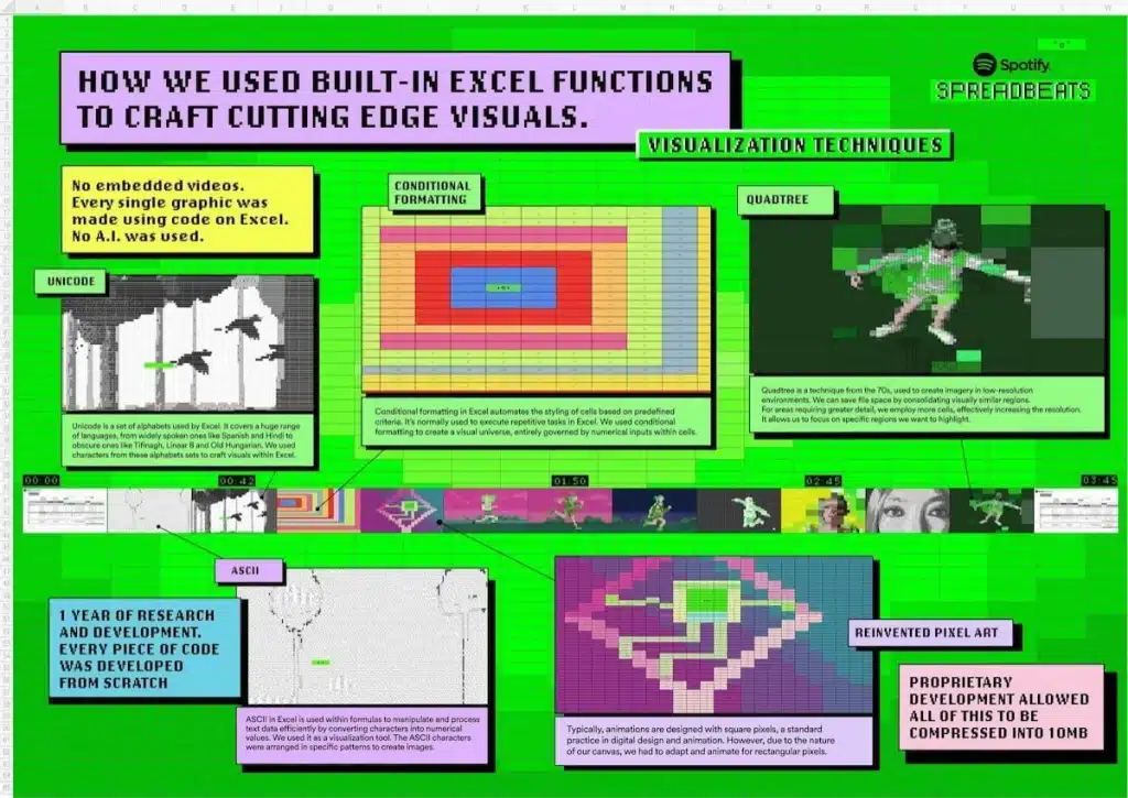 Trong quá trình xử lý hình ảnh cho video, đội ngũ Spotify đã tận dụng linh hoạt các công cụ sẵn có của Excel, mang đến một trải nghiệm hình ảnh độc đáo và đầy cảm xúc cho người xem.