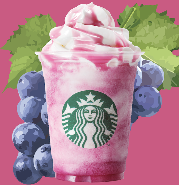 Tiếp đến, màu hồng tươi đại diện cho Frappuccino tỉnh Yamanashi, được lấy cảm hứng từ loại nho Nhật Bản tuyệt đỉnh của tỉnh này. Thức uống kết hợp si rô nho hòa quyện với sô cô la trắng đem đến cho người dùng một thị giác vô cùng hấp dẫn với hương vị ngọt ngào.