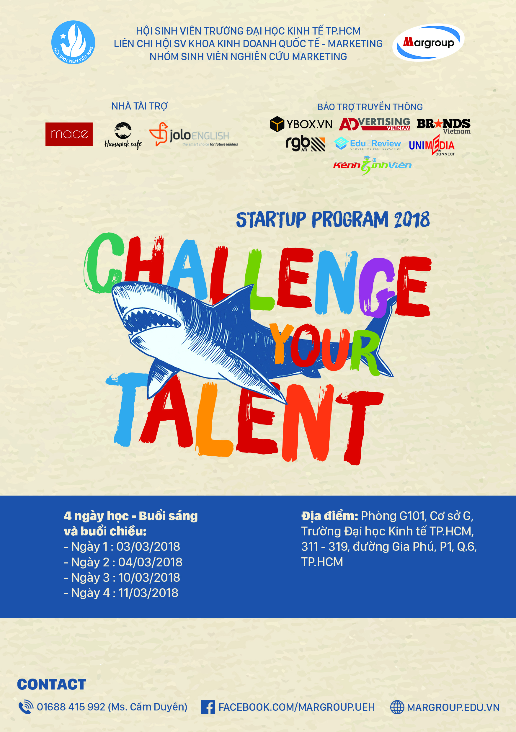 Các bạn đăng ký tại link bên dưới hoặc đến bàn truyền thông của Margroup đặt ở B.008 (cơ sở 279 Nguyễn Tri Phương, phường 5, quận 10, TP.HCM).