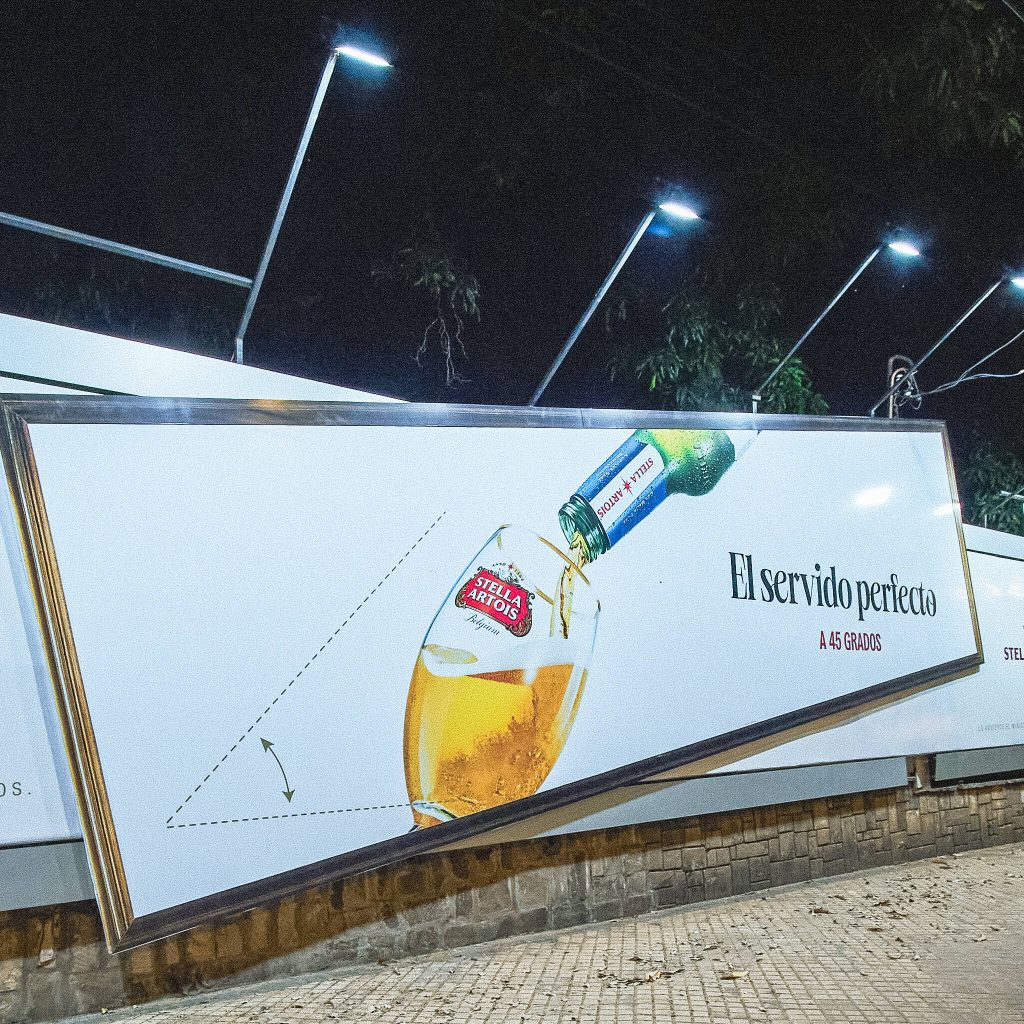 Để quảng bá sản phẩm mới bia không chứa cồn của mình ở Paraguay, Stella Artois đã phát động chiến dịch có tên “The Perfect Serving”, với các biển hiệu được cố tình lắp nghiêng một góc đúng 45° trên khắp thủ đô Asunción.