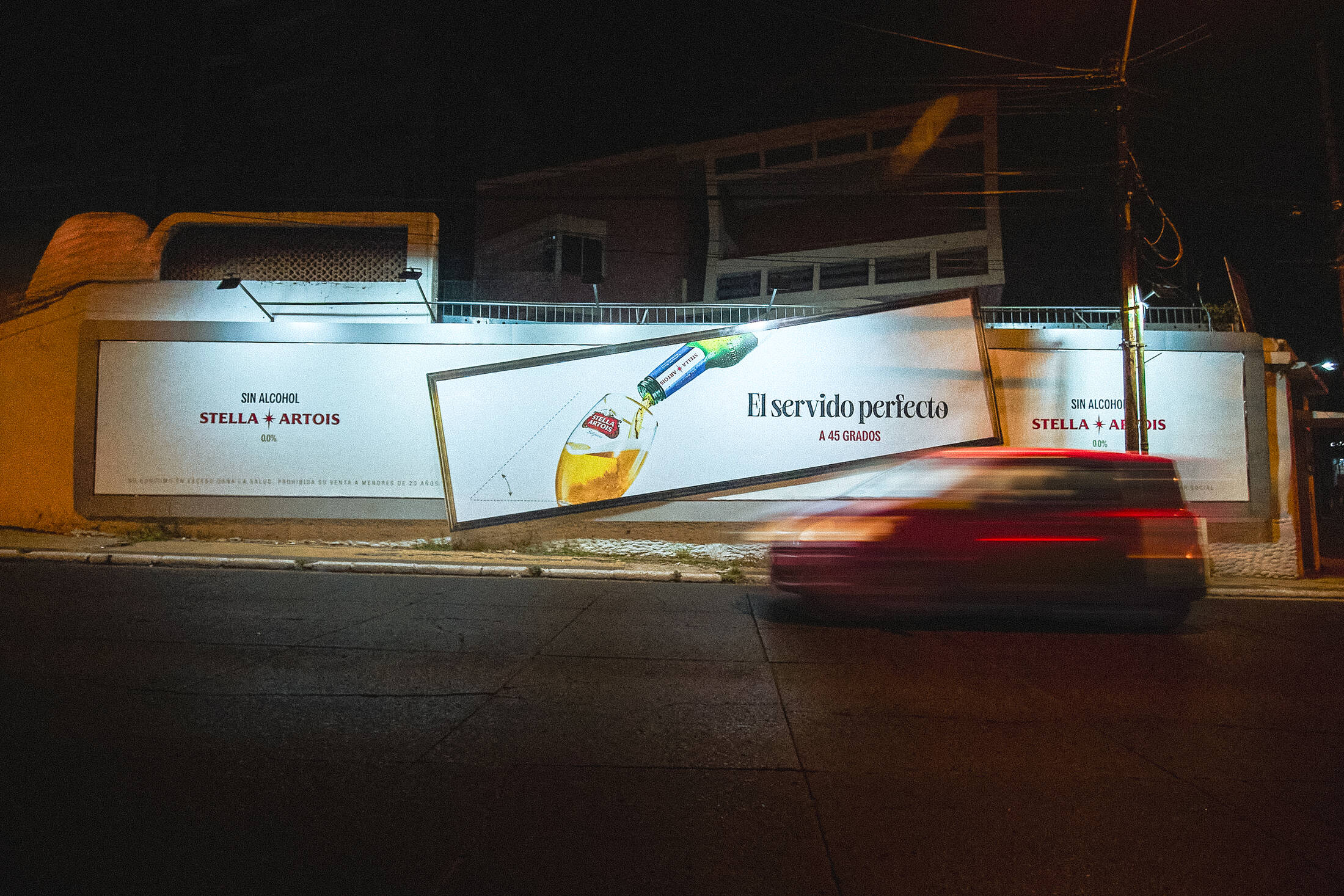 Để quảng bá sản phẩm mới bia không chứa cồn của mình ở Paraguay, Stella Artois đã phát động chiến dịch có tên “The Perfect Serving”, với các biển hiệu được cố tình lắp nghiêng một góc đúng 45° trên khắp thủ đô Asunción.