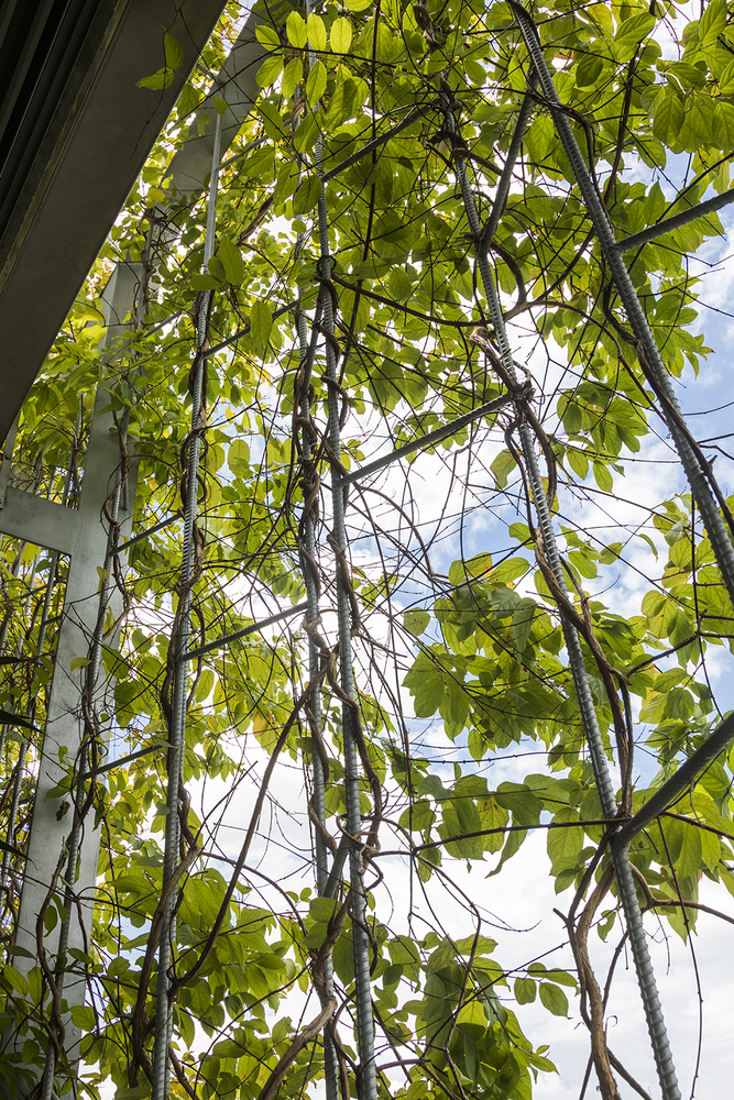 Khoảng trống được mở theo đường chéo lên trên mang lại hệ thống thông gió tự nhiên xuyên suốt ngôi nhà, nhờ hiệu ứng của ống khói. Bằng cách đó việc sử dụng máy điều hòa không khí được giảm thiểu. Bước qua không gian trong ngôi nhà, ta sẽ cảm nhận được luồng gió thổi từ phòng khách lên tầng cao nhất. Mặt tiền xanh làm dịu đi cái nắng gay gắt của khí hậu nhiệt đới. Mô hình trở thành tiền lệ cho nhà ở ở vùng khí hậu nhiệt đới.