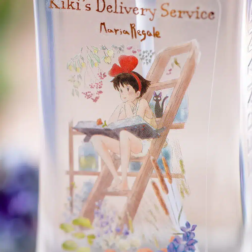 Đầu tiên là loại nước hoa Maria Regale, được lấy cảm hứng từ bộ phim Kiki’s Delivery Service. Người hâm mộ sẽ cảm nhận được những nốt hương hoa trắng tinh tế gợi nhớ đến ngôi nhà của Kiki và tất cả các loại thảo mộc của cô ấy. Loại nước hoa này là sự kết hợp của mùi hoa nhài, hoa linh lan và quả lê. Bạn sẽ thấy Kiki ngồi trên chai với một cuốn sách trên đùi khi cô ấy suy ngẫm về cuộc sống.