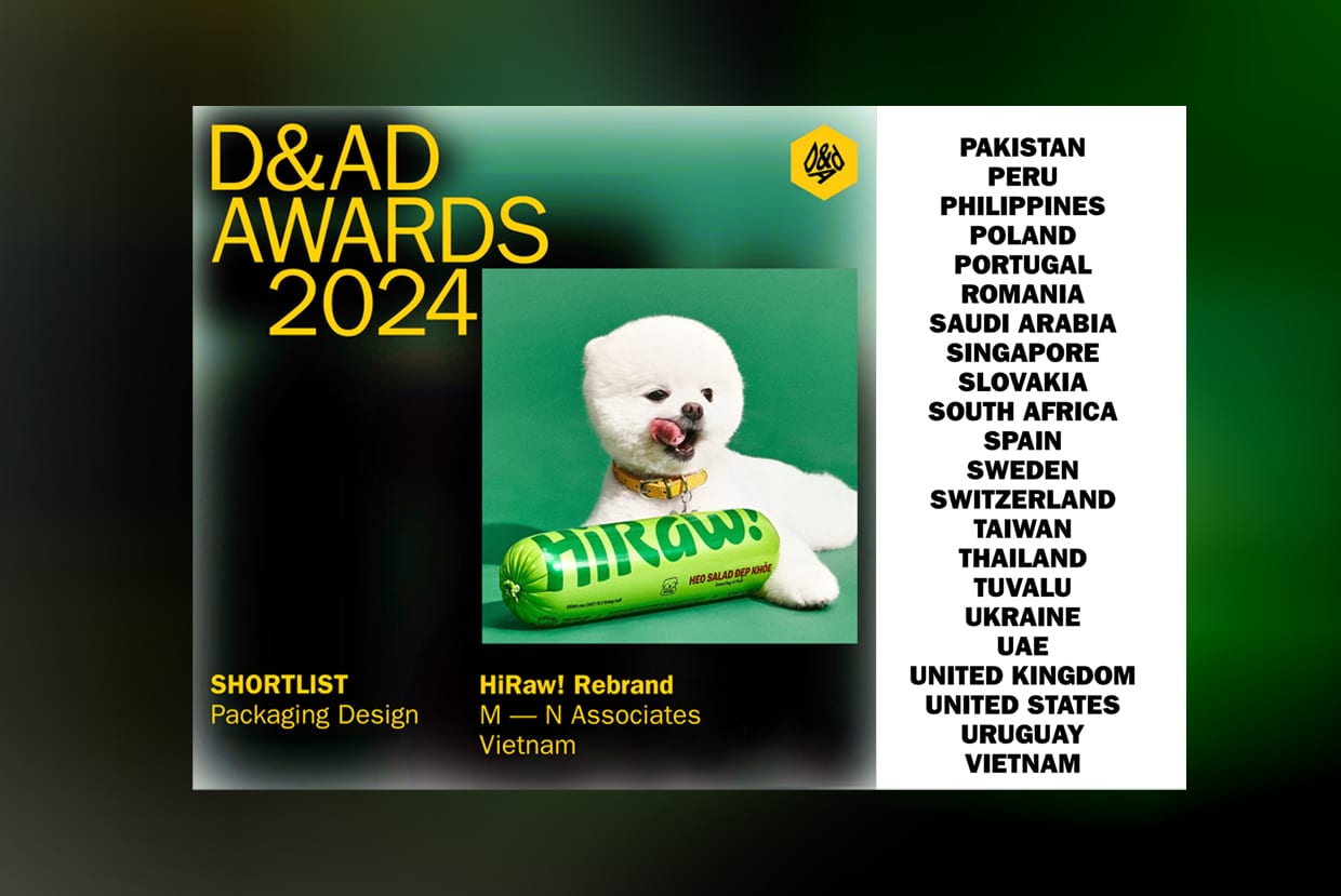 M – N Associates vinh dự là studio Việt Nam duy nhất có tên trong shortlist giải thưởng D&AD Awards 2024 với dự án HiRaw! Rebrand, đưa thương hiệu Việt toả sáng trên sân chơi quốc tế.