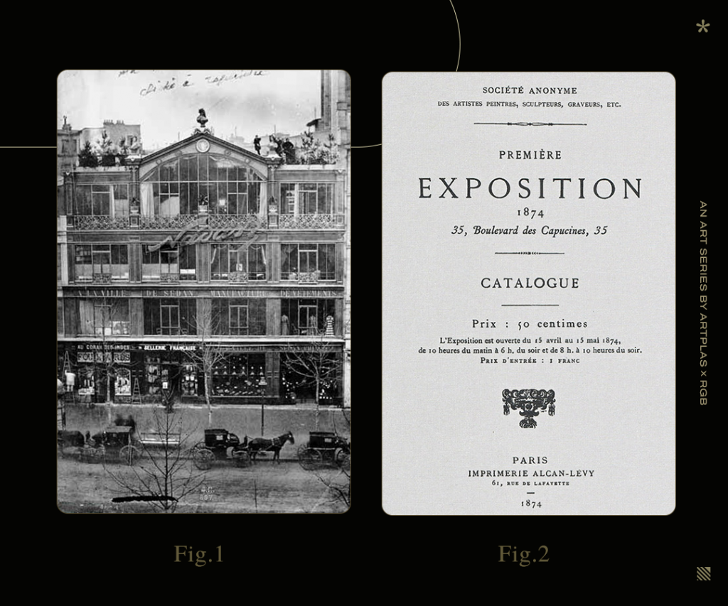 Bức tranh đã được trưng bày cùng với hơn hai trăm tác phẩm của ba mươi nghệ sĩ, bao gồm Edgar Degas, Camille Pissaro, Pierre-Auguste Renoir và Alfred Sisley. Tuy nhiên, trong số tất cả các tác phẩm được trưng bày ở đó, Ấn tượng mặt trời mọc trở nên nổi tiếng nhất do thu hút được nhiều lời bình phẩm nhất, và chính điều này đã tạo nên tên gọi của trường phái.