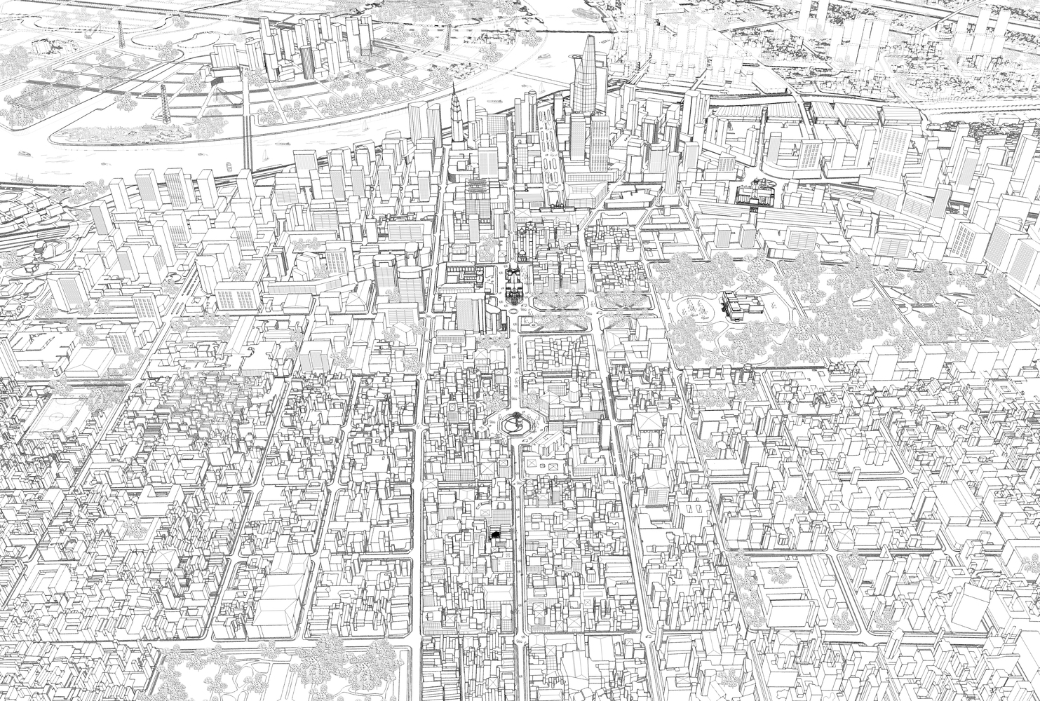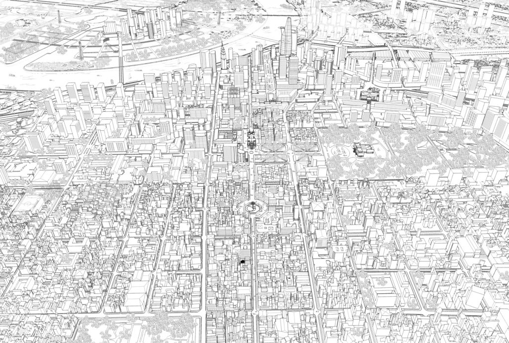 Khái niệm này được thực hiện theo cách nghĩ về sự trôi nổi, không giới hạn của không gian, chỉ có hoạt động con người trong tương tác với đồ đạc, cây cối bên trong nội thất và bên ngoài khu vườn mới là trung tâm của kiến trúc.