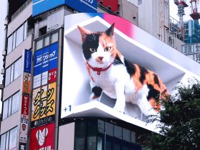Chú mèo 3D khổng lồ trên billboard quảng cáo ấn tượng ở nhà ga Shinjuku, Tokyo