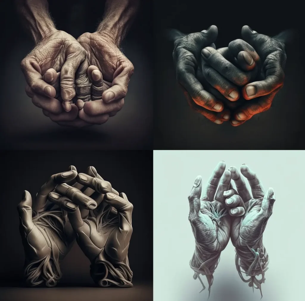 Trong hầu hết các trường hợp, hình ảnh bàn tay con người do AI tạo ra đều trông rất “lạ lắm” với nhiều ngón tay thừa (đôi lúc là thiếu), và nằm ở các vị trí khác nhau hề đúng với giải phẫu học.