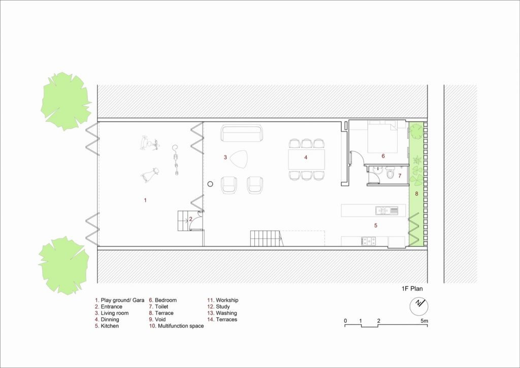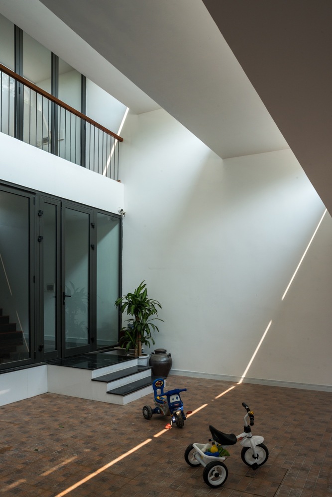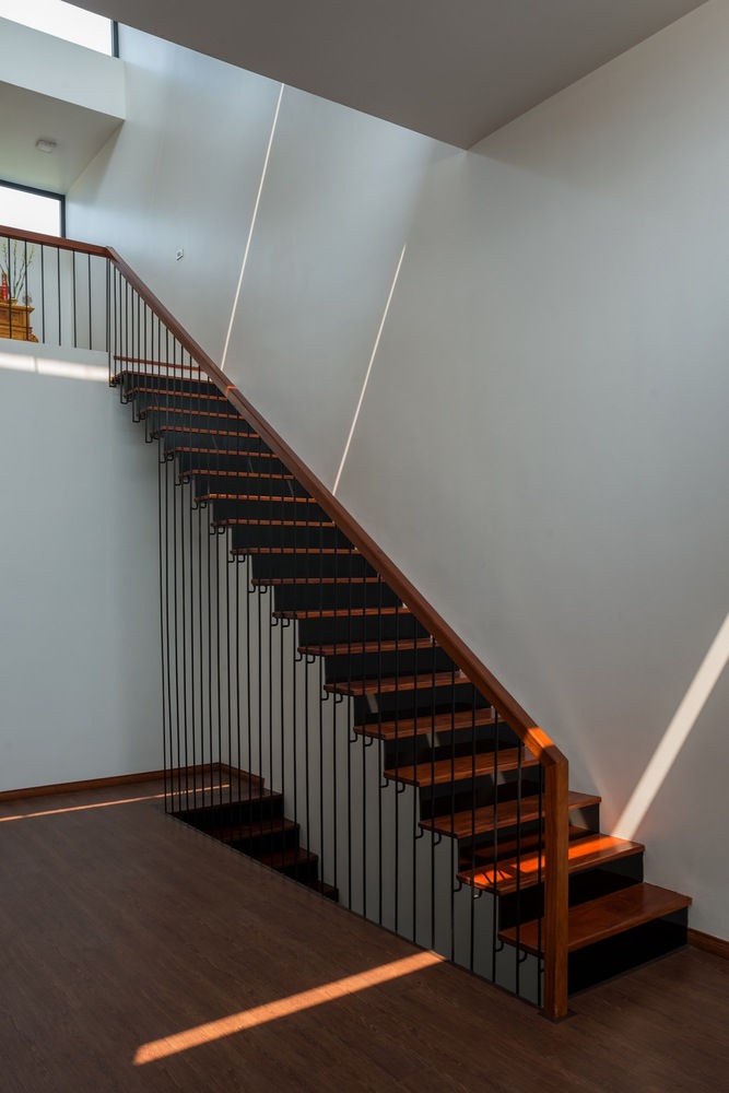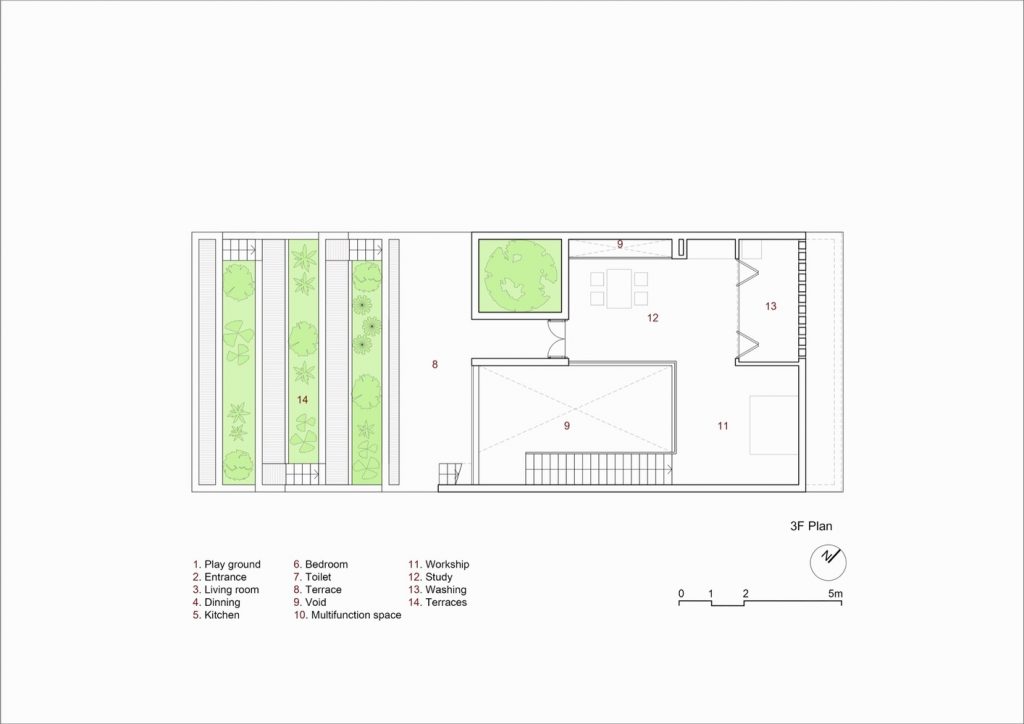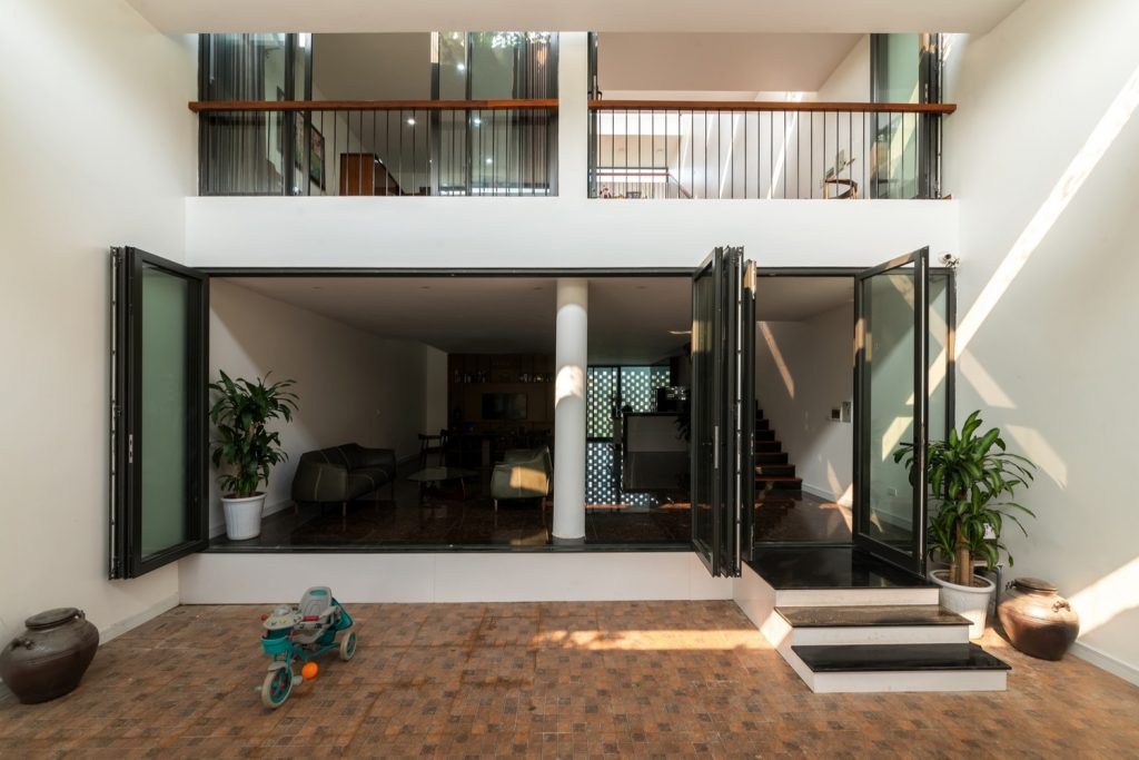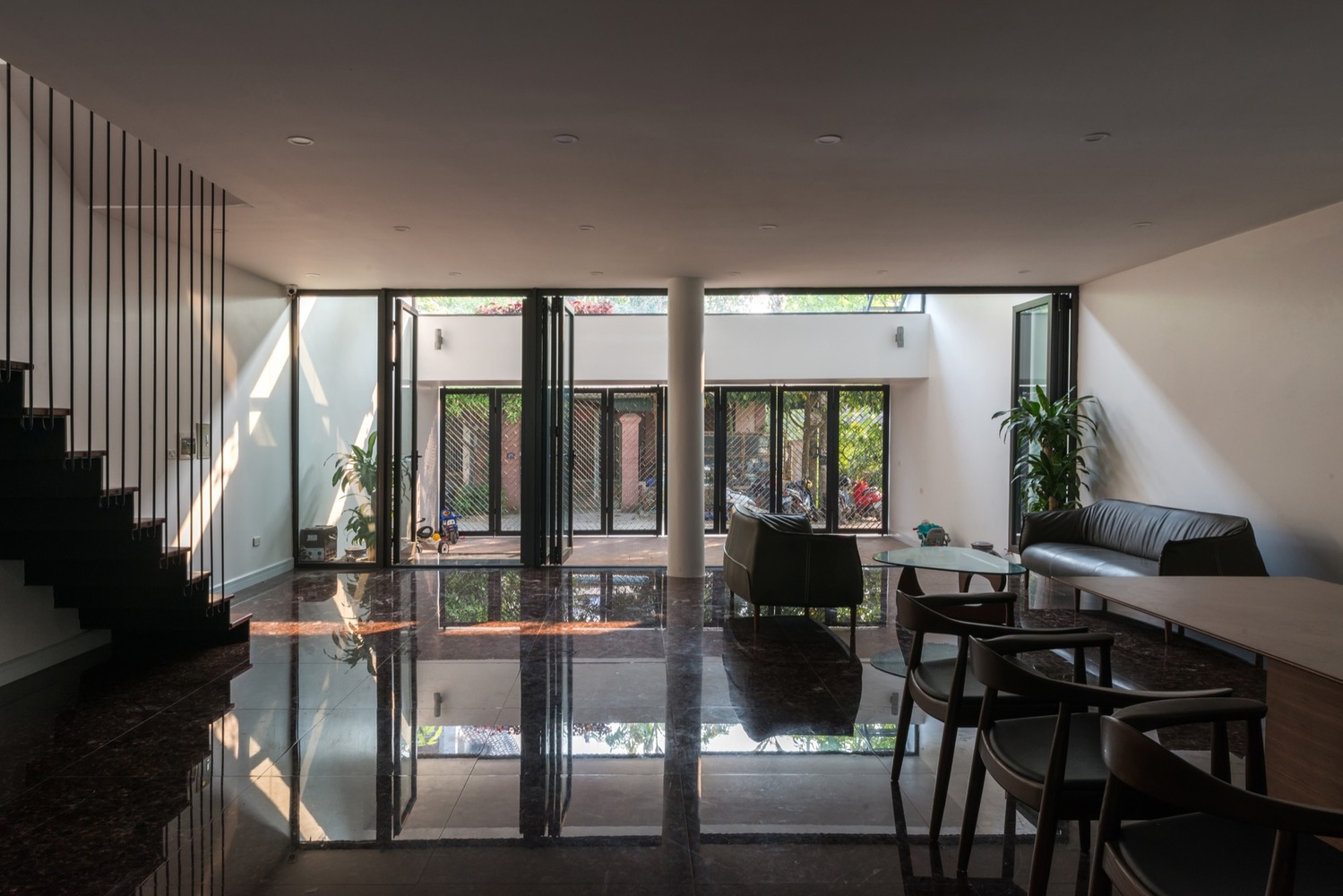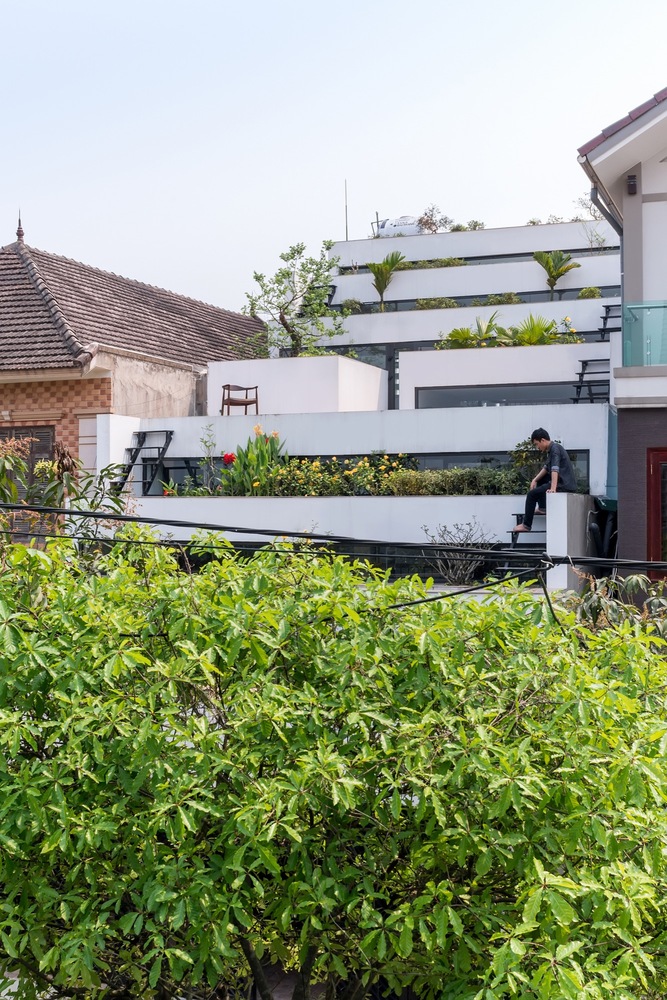 Ý tưởng là kết hợp hai yếu tố đặc trưng của vùng nông thôn Việt Nam: Ngôi nhà (không gian ở) và ruộng bậc thang (không gian canh tác) để tạo ra một Ngôi nhà xóa nhòa ranh giới giữa trong và ngoài, trên và dưới, chung và riêng.