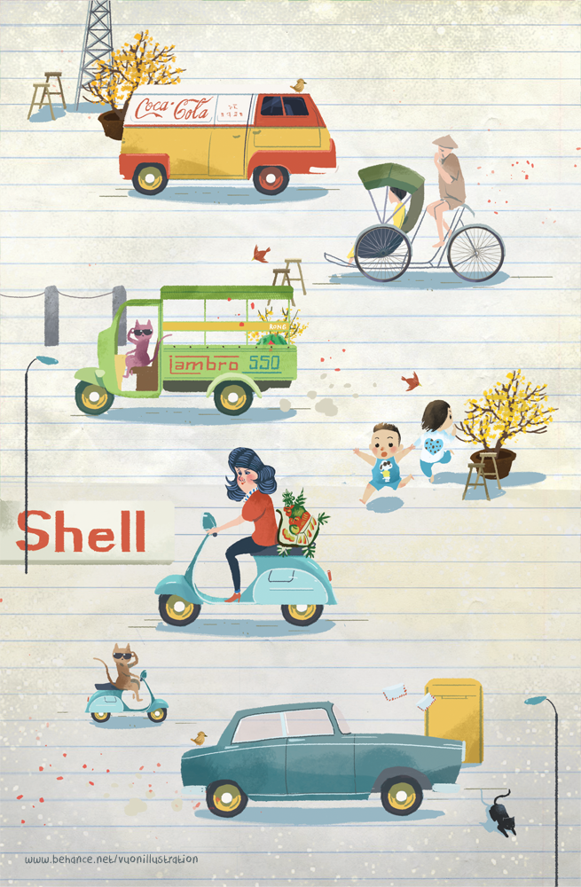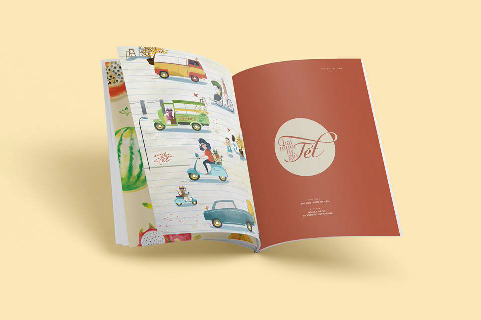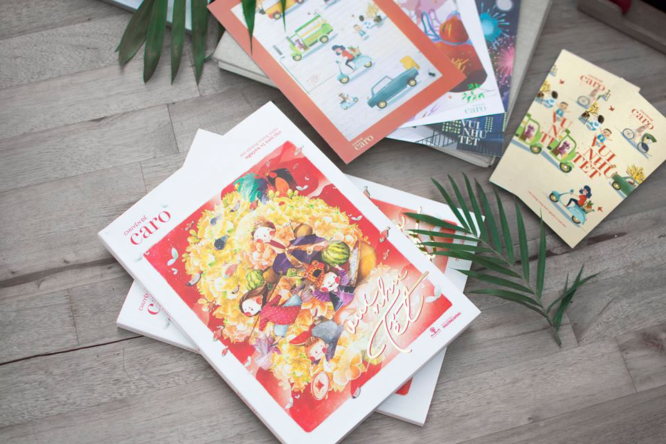 Tháng 11 2017, bọn mình được bạn chủ tòa soạn bên Caro Journal contact để vẽ cho 1 bài trong số đầu tiên, số Tết của Caro. Bọn mình vẽ về các trò chơi mình thường chơi ngày Tết như Bầu cua cá cọp, Lô Tô hay là Sài gòn xưa với những chiếc vespa, xe lam,… hay cảnh gia đình quây quần bên bánh mứt ngày Tết.