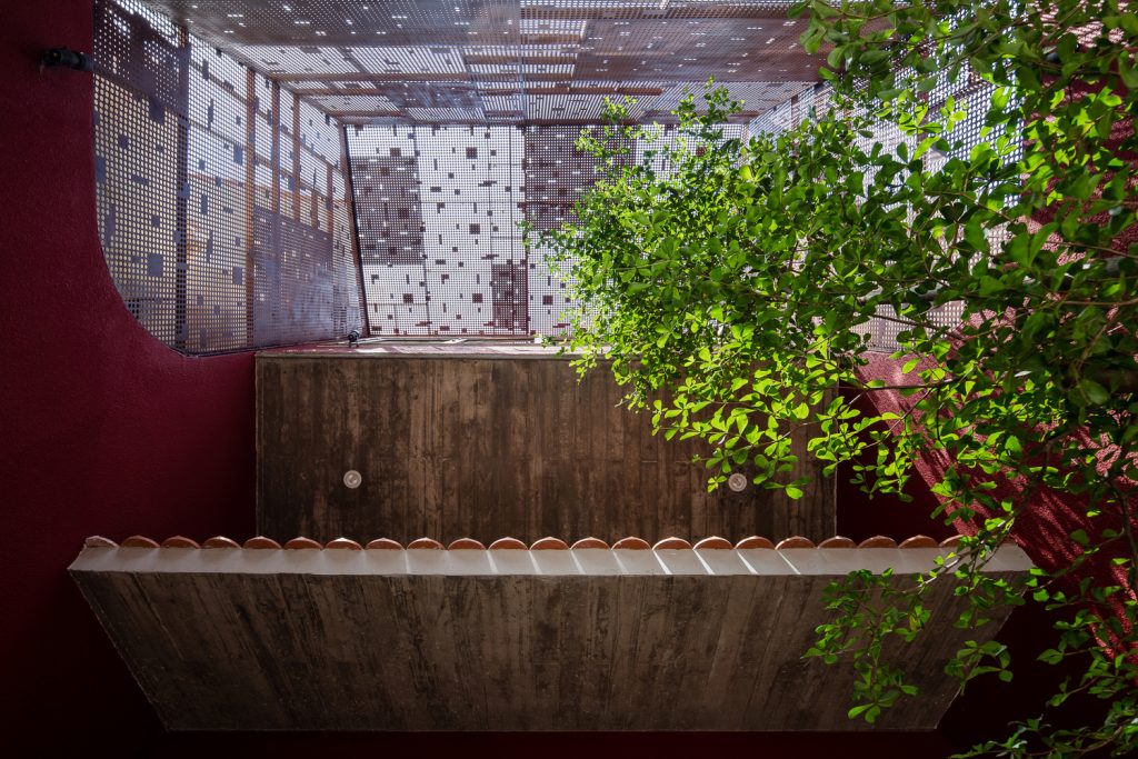 Cuối cùng, nhưng không kém phần quan trọng, là sân giặt và đường dẫn ra vườn, vì toàn bộ diện tích của mái dốc được tận dụng để trồng cây bóng mát, hoa và rau hữu cơ. Điều này tạo ra một không gian sân vườn trong lành và thông thoáng, nơi cư dân có thể tổ chức các hoạt động thường ngày và có những phút giây quây quần bên nhau.