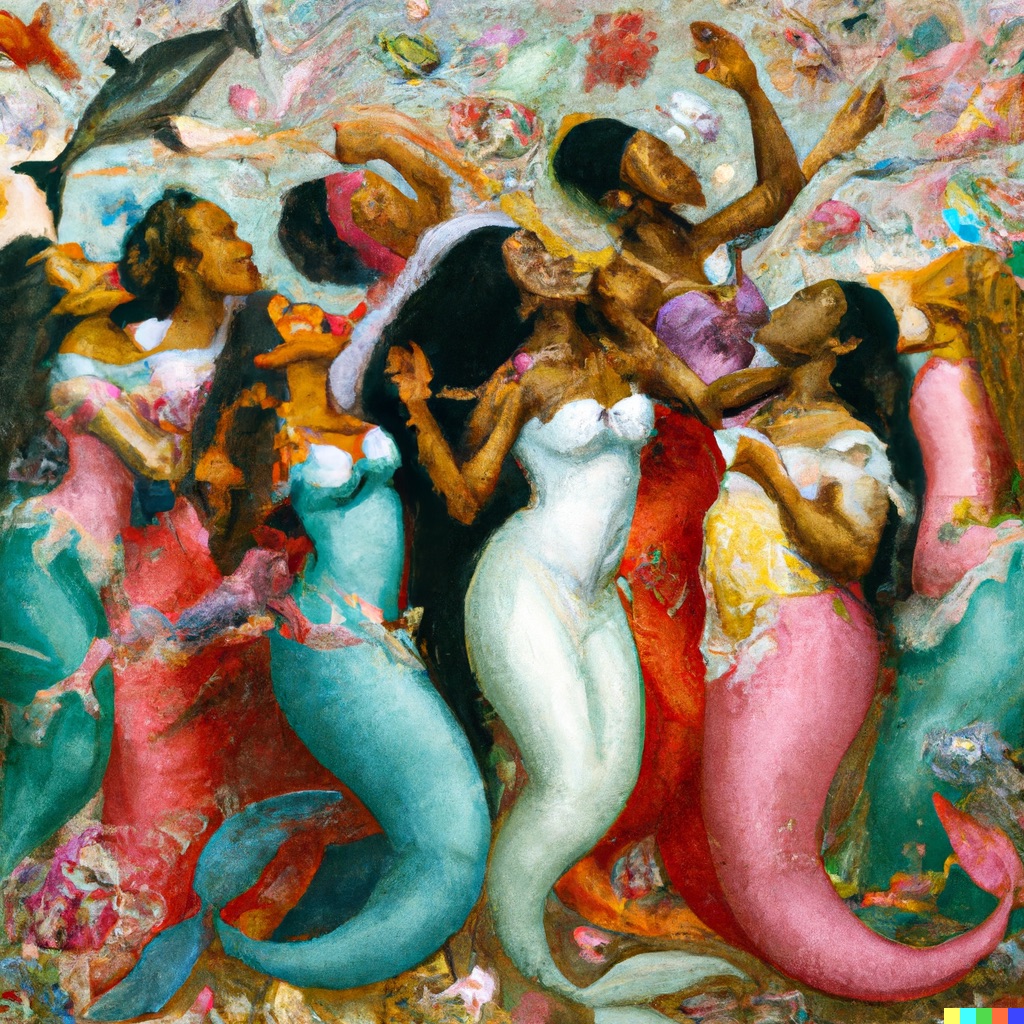Bộ phim người thật đóng mới nhất của Disney, The Little Mermaid, đã nhận về nhiều phản ứng trái chiều vì lập trường về sự đa dạng chủng tộc trong các tác phẩm cổ điển đang gây chia rẽ người hâm mộ. DALL-E nắm bắt được tinh thần và trái tim của phong trào này khi tạo ra một bức tranh bao gồm một nhóm các nàng tiên cá da đen đang ăn mừng.