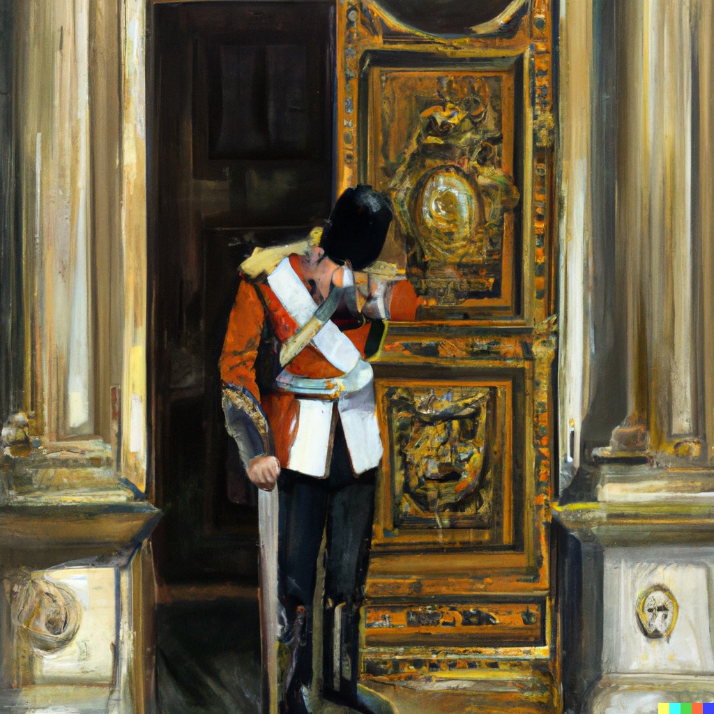 Một trong những sự kiện mang tính lịch sử nhất trong năm của thế giới được miêu tả một cách đầy bi ai với khung cảnh một trong những vệ binh của Nữ hoàng cúi đầu để vinh danh bà.