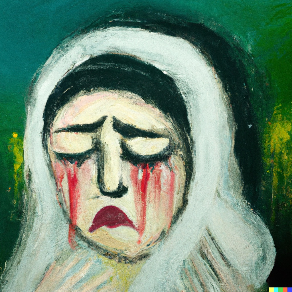 Vụ giết hại Mahsa Amini gần đây đã làm dấy lên cơn thịnh nộ của phụ nữ Iran. Cái chết của cô cho thấy sự khắc nghiệt về bình đẳng và truyền thống tại đất nước Hồi giáo này. Tác phẩm là bức hình Mahsa Amini đang khóc đầy ám ảnh khi đeo chiếc khăn trùm đầu của mình.