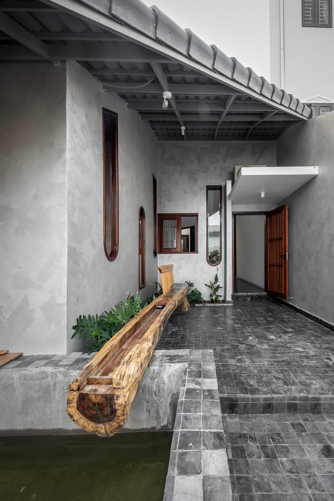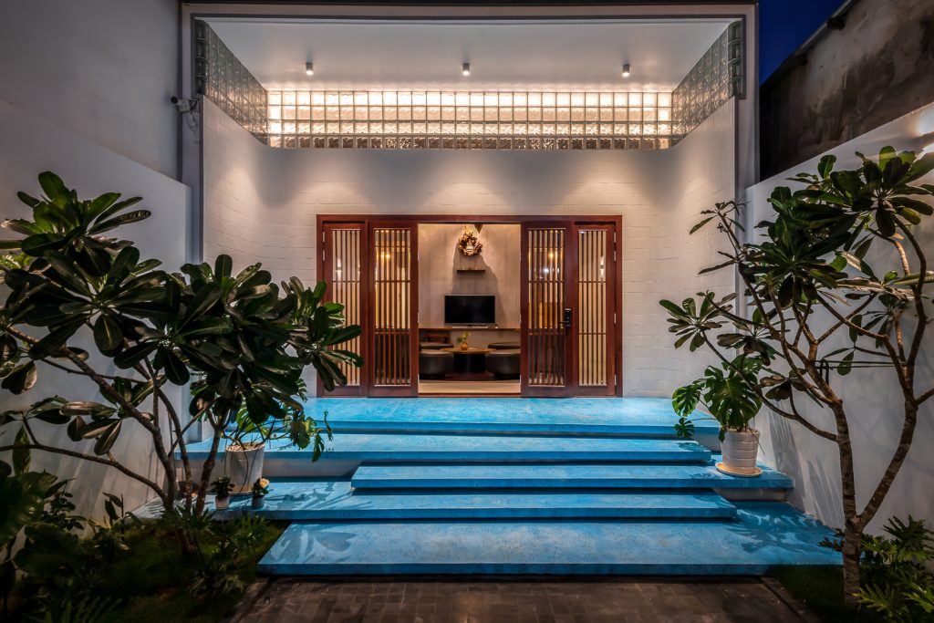 DA VÀNG studio đã thiết kế một ngôi nhà tiện nghi để tận hưởng phong cách sống nghỉ dưỡng theo yêu cầu của gia chủ. Kích thước dài và hẹp (6×45 mét) với sảnh dài và tối là những vấn đề lớn nhất của công trình này. Do đó, đó là những thứ cần được giải quyết đầu tiên.