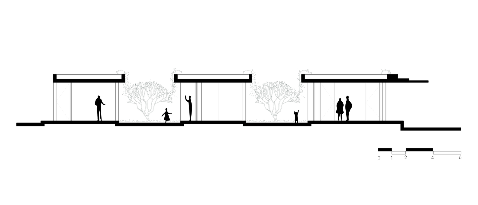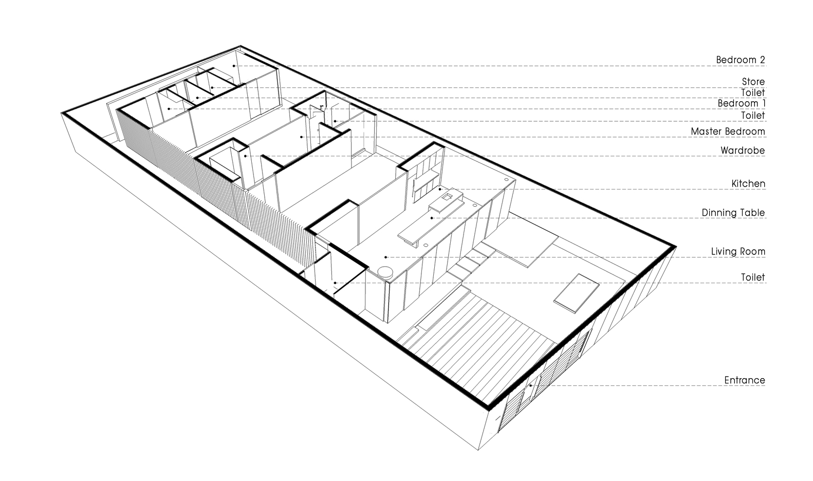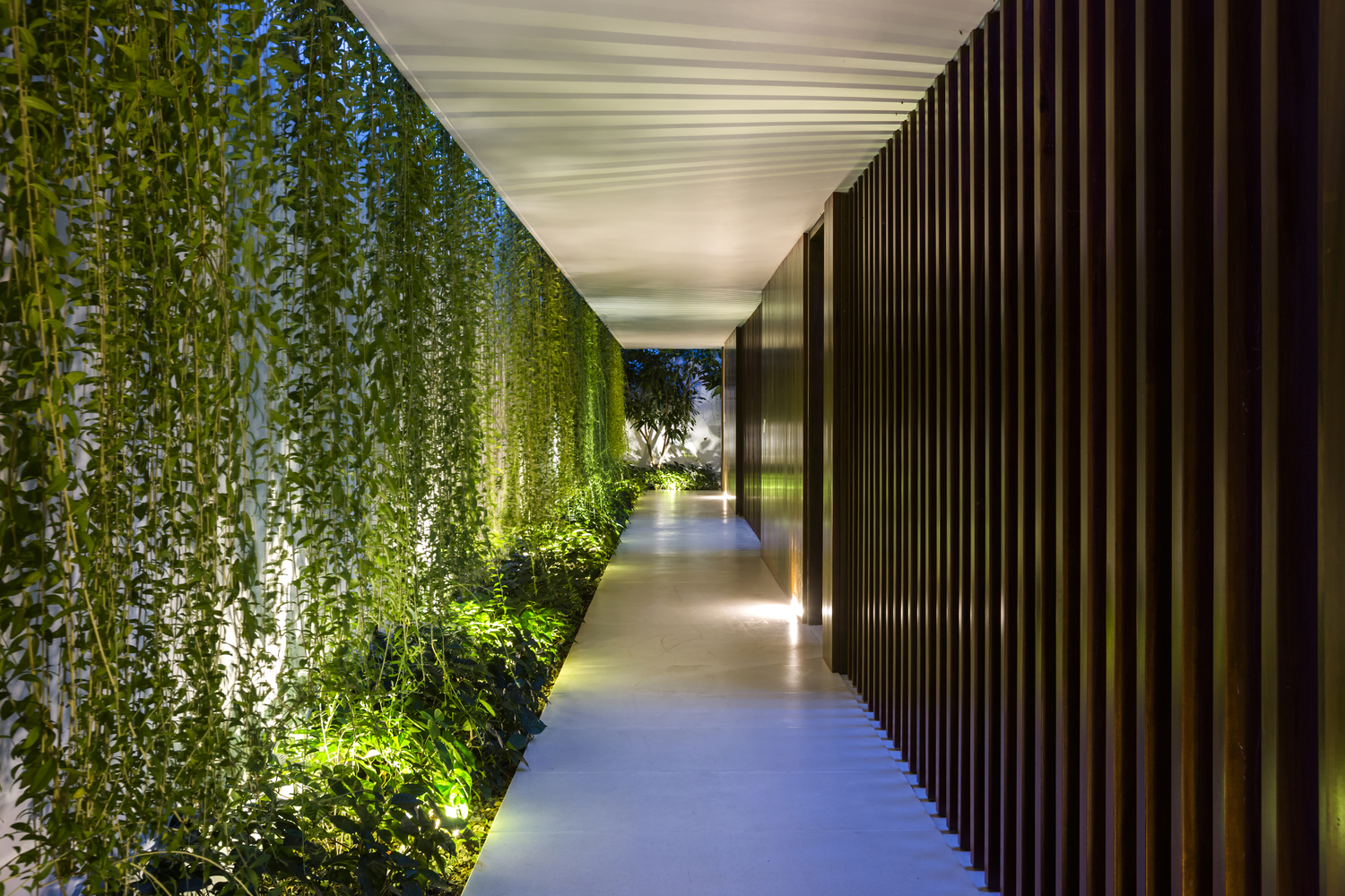 Ngôi nhà nằm trên mảnh đất rộng 470 mét vuông với 60% diện tích đất dành cho cảnh quan. 60% được sắp xếp một cách sáng tạo qua các vách ngăn để thiên nhiên không bao giờ khuất tầm mắt. Với 40% diện tích còn lại, các kiến trúc sư đã chia nó thành những “ngăn kéo” chứa các không gian chức năng, đồng thời chèn vào giữa chúng những “ngăn kéo cảnh quan”.