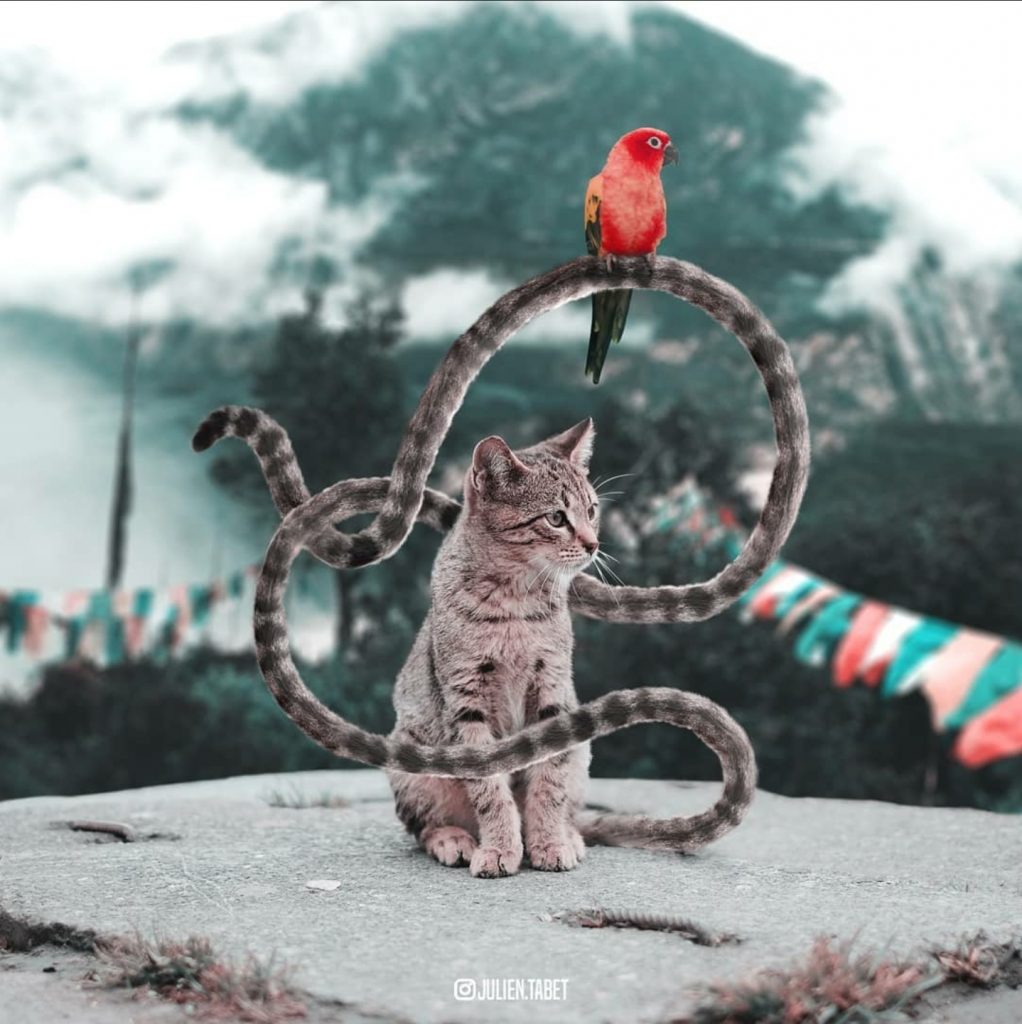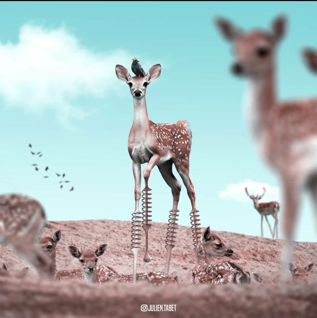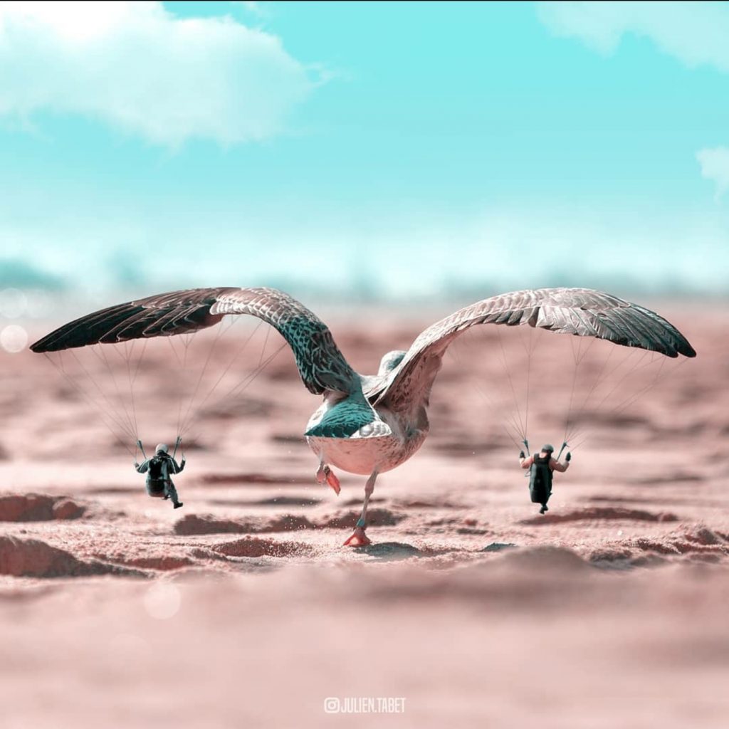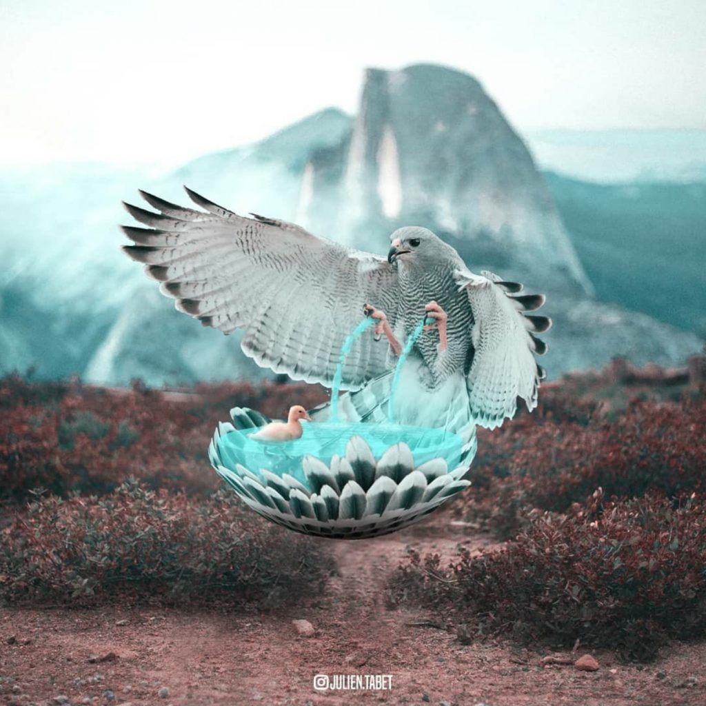 Tất cả các tác phẩm nghệ thuật của Julien đều được thực hiện bằng Photoshop, một trong những công cụ sáng tạo mạnh mẽ nhất của thế hệ chúng ta. Lấy cảm hứng từ những nghệ sĩ nổi tiếng với phong cách siêu thực như Magritte và Dali, Julien nghĩ rằng đó là cách tốt nhất để chia sẻ ý tưởng những ý tưởng và trí tưởng tượng có phần điên rồ của mình.