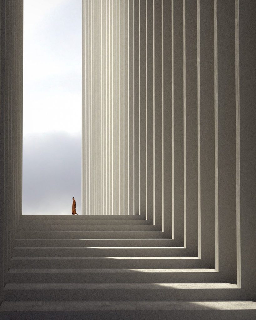 Các tác phẩm của anh thường có một nhân vật đơn độc làm trung tâm và tương phản với các kết cấu kiến trúc khổng lồ xung quanh, tạo liên tưởng về ngày tận thế. Với những hình ảnh này, cuộc chuyện trò về sự phụ thuộc công nghệ ngày càng tăng của con người và vấn đề khủng hoảng khí hậu xuất hiện một cách tự nhiên trong ý nghĩ mà không gượng ép.