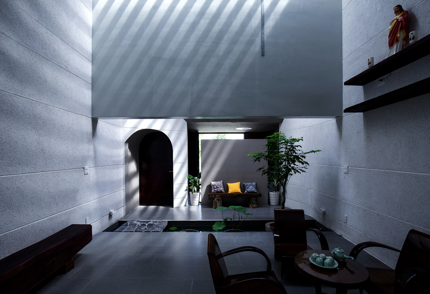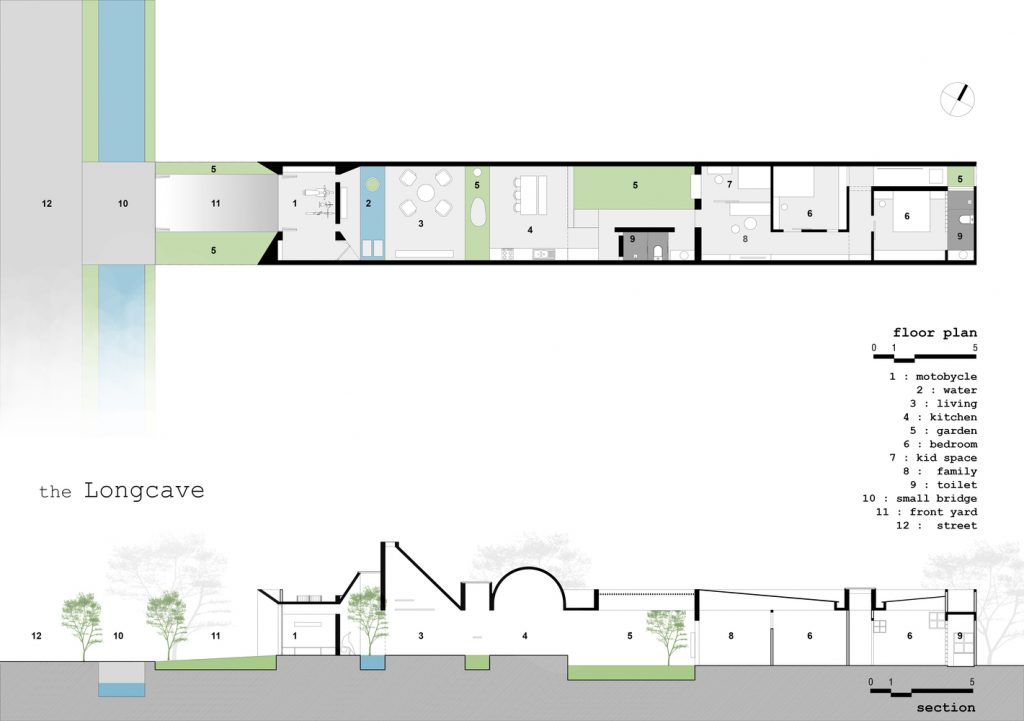 Nằm trên một lô đất khá dài với diện tích 5x40m, The Longcave được lấy cảm hứng từ phần không gian của hang Sơn Đoòng với suy nghĩ tạo ra một nơi ở, không chỉ là một ngôi nhà, mà đó còn là nơi trút bỏ mọi lo lắng, nơi gia chủ có thể thả mình với bình yên.