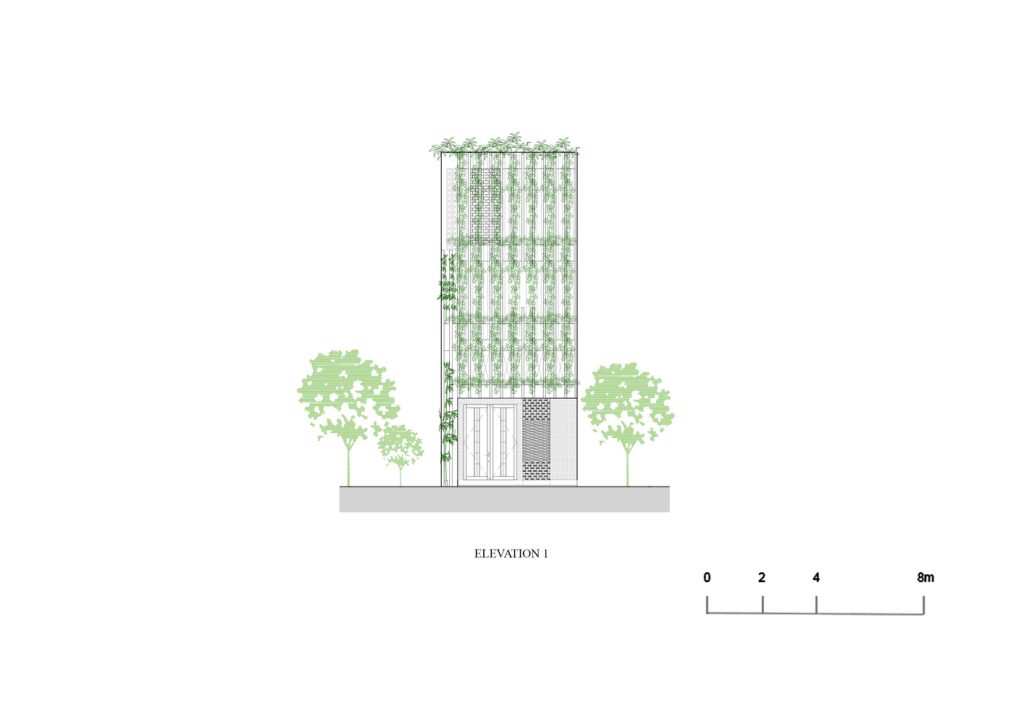 Để tái tạo không khí của một ngôi nhà nông thôn, KTS đã sử dụng gạch không nung. Sàn nhà được lát gạch bê tông trang trí với tông màu xám nhạt. Các mái nhà xi măng xuất hiện như một giàn giáo tương tự như phương pháp xây dựng ở nông thôn. Điều này tạo ra chiều sâu vì cấu trúc 3 chiều của nó. Một tòa nhà hiện đại với cảm giác không tuổi.