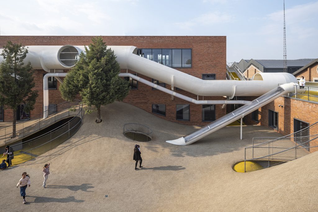 Bắc Kinh là thành phố có các công trình thiết kế ấn tượng và là điểm đến hấp dẫn người đam mê kiến trúc. Từ những tòa nhà mới được xây dựng khác biệt nhờ những hình ảnh và chi tiết bất ngờ, đến những tòa nhà cũ được tân trang lại đầy các yếu tố mới và đáng ngạc nhiên. Mới đây, một studio có trụ sở tại Bắc Kinh tên là waa, đã cải tạo một nhà kho cũ từ những năm 1970 thành The Playscape, một trường mẫu giáo với không gian học tập độc đáo.