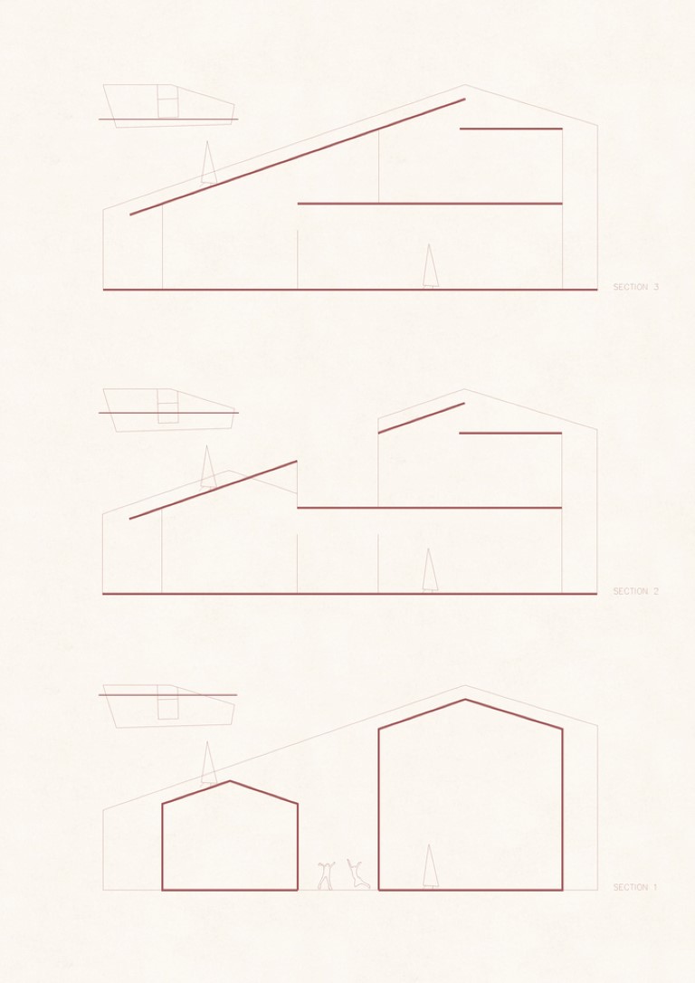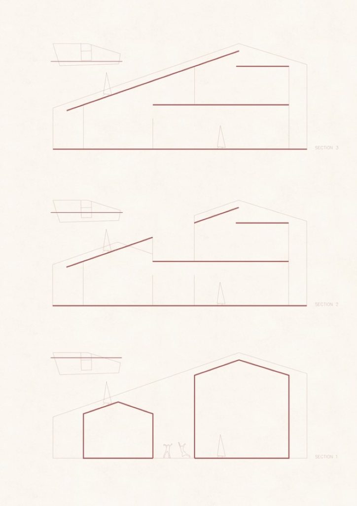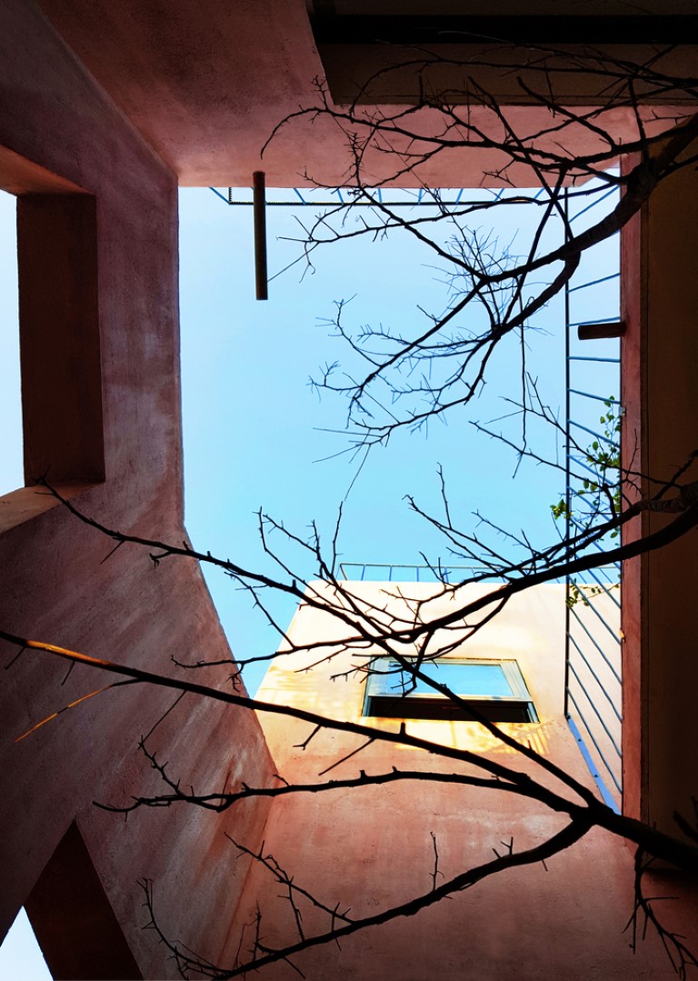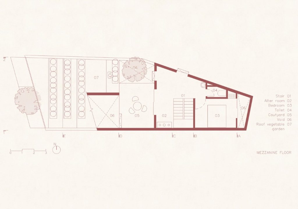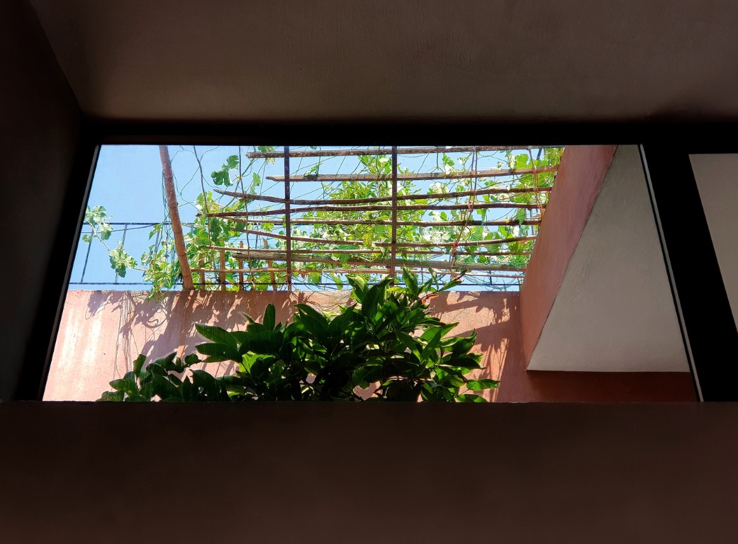 Nhóm KTS đề xuất những khu sân nhỏ ở phía trước, giữa và sau của ngôi nhà, để kết nối các không gian trong nhà với thiên nhiên. Thay vì có một khoảng sân rộng như những ngôi nhà khác trong làng, KTS tạo ra nhiều khoảng sân với chiều cao khác nhau, phù hợp với chiều cao của cấu trúc ngôi nhà. Trên tầng lửng có khoảng sân nhỏ thông với sân giữa nhà.