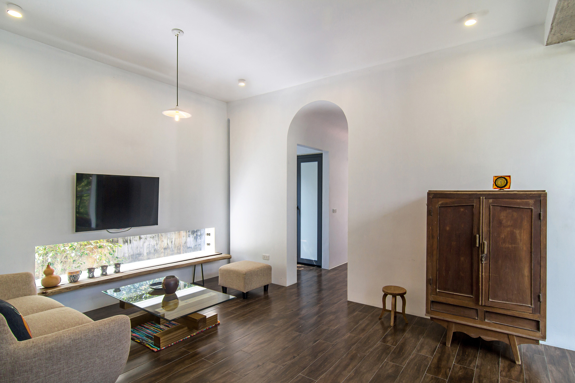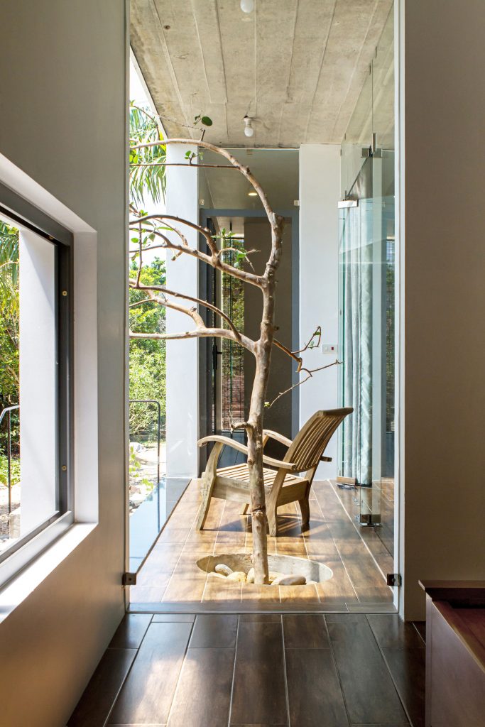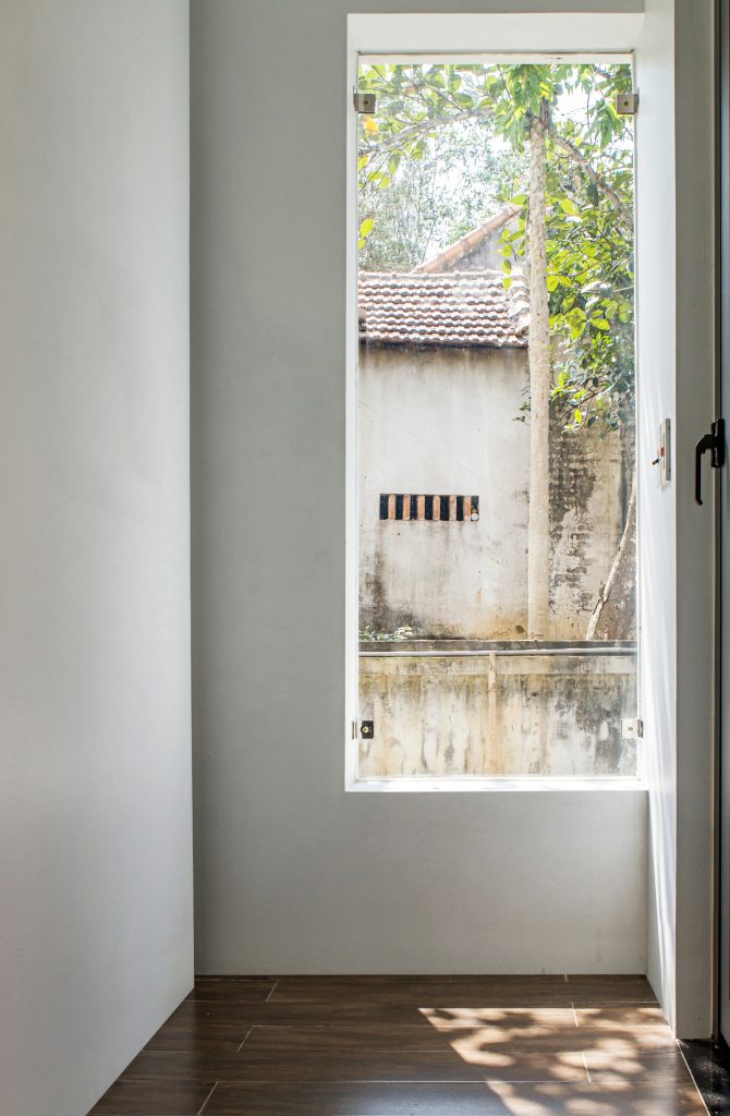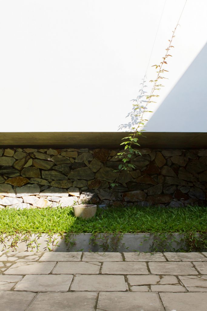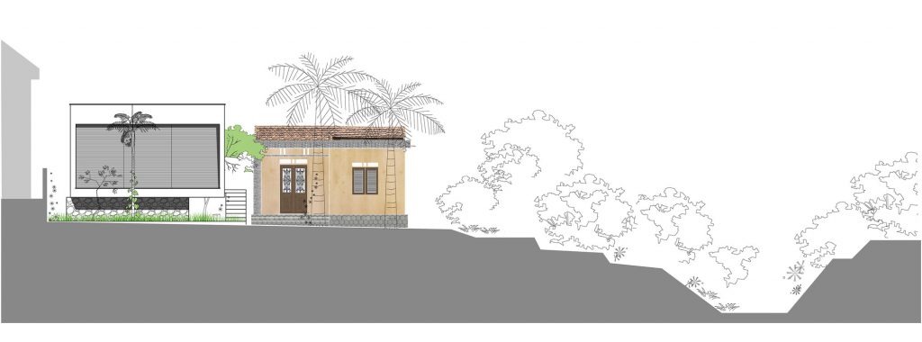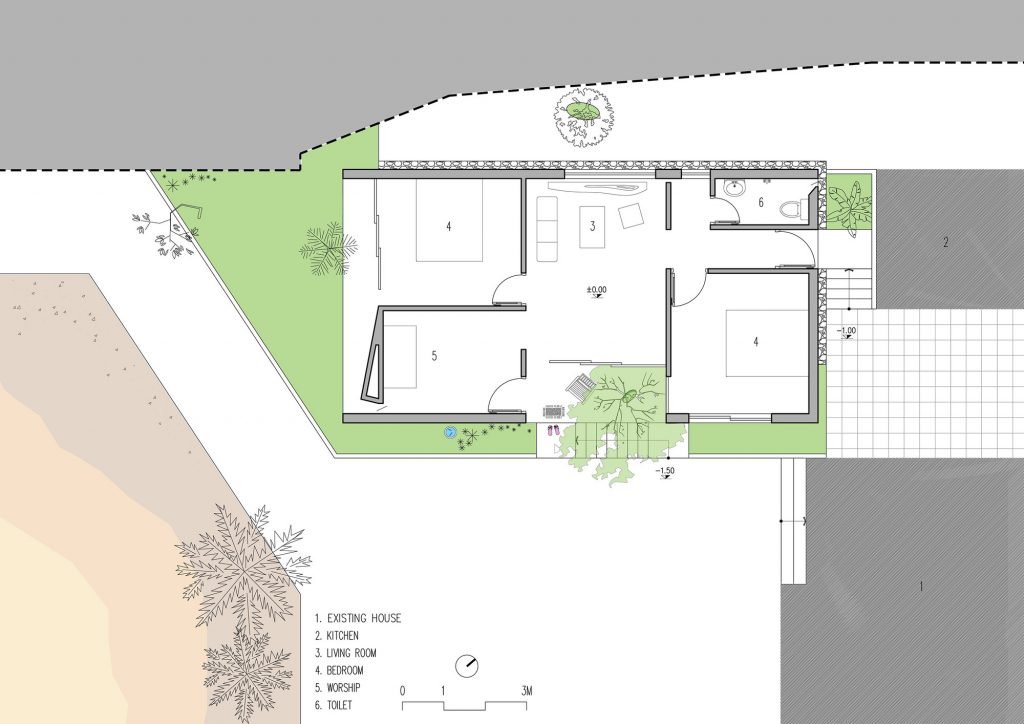 Một nền đá được xây dựng với độ cao bằng mức ngập lụt tối đa. Một không gian mở hướng ra khu vườn hiện có. Diện mạo của The Shelter là một thể thống nhất cộng sinh với ngôi nhà trước đó.