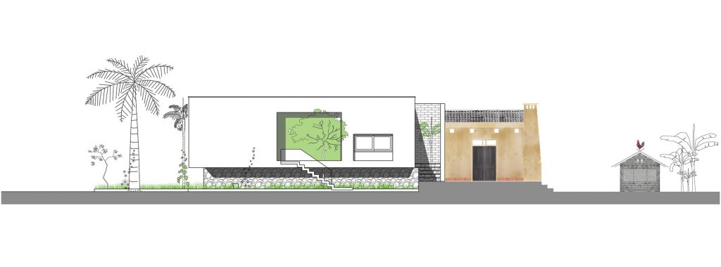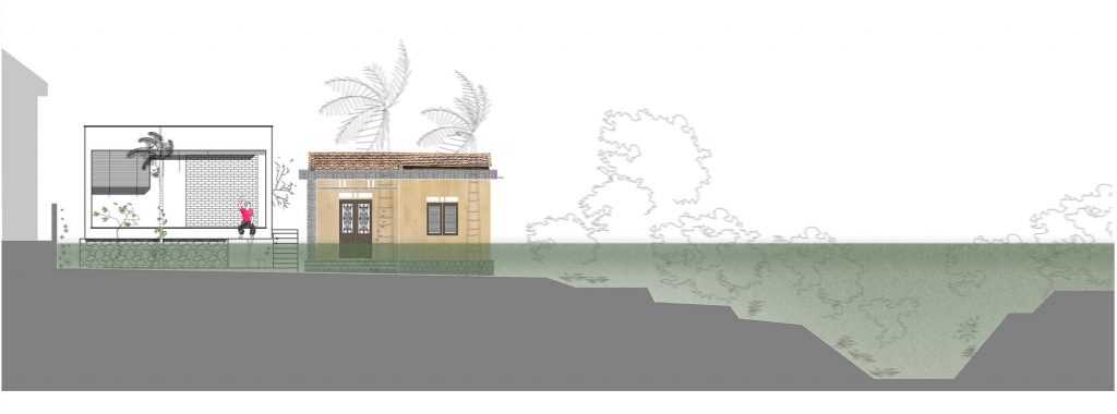 Ngôi nhà tọa lạc tại một vùng nông thôn đất trũng bị ngập lụt hàng năm của tỉnh Nghệ An. Mục đích của dự án về cơ bản là kết hợp một nơi ở trên cao để tránh lũ hàng năm mà vẫn duy trì được không gian đáng nhớ hàng ngày của chủ nhân.