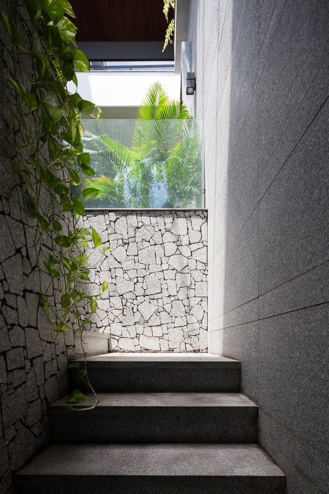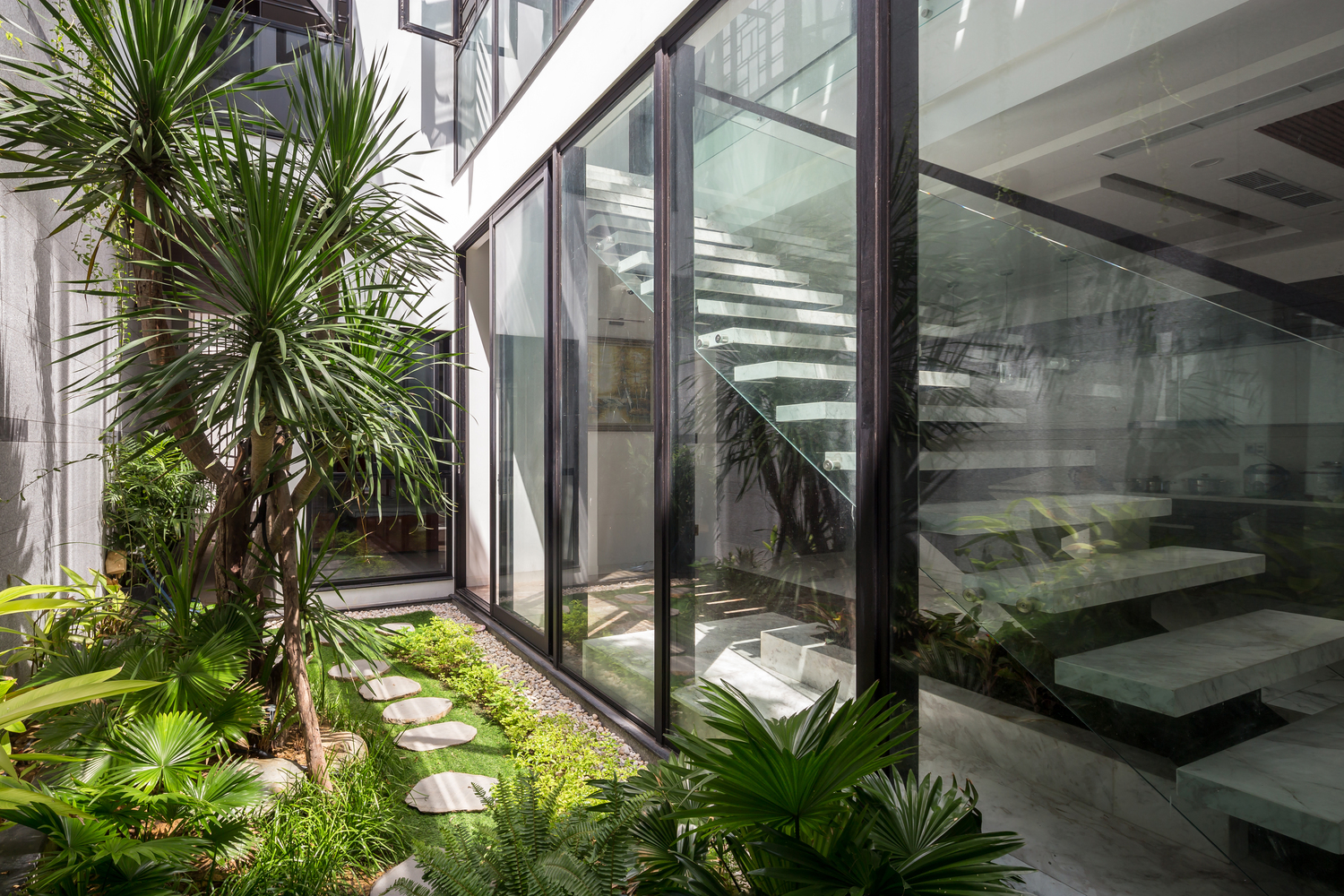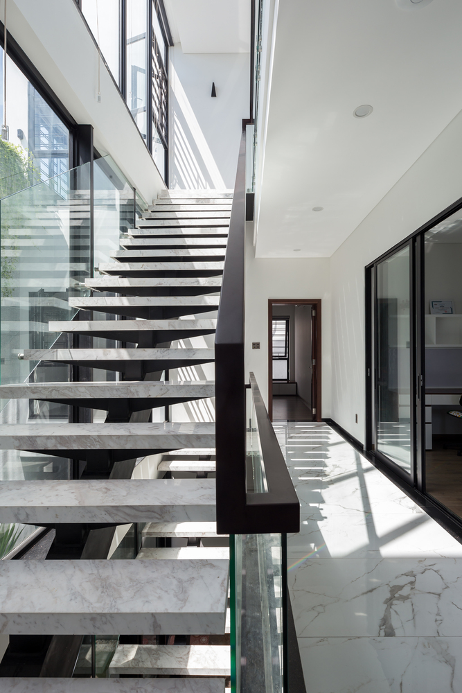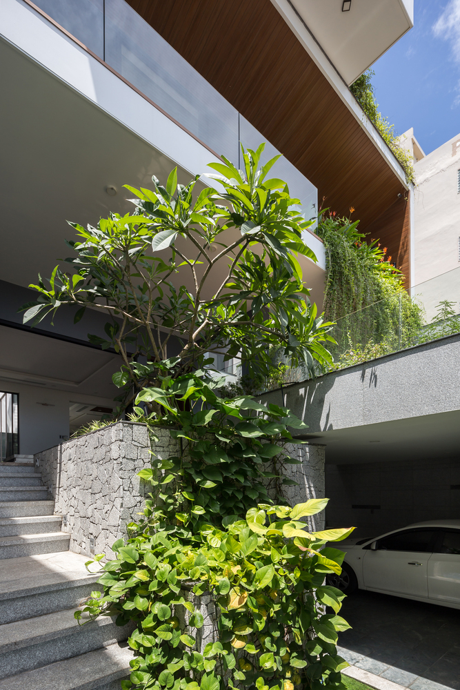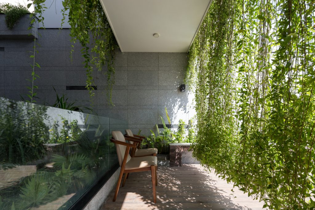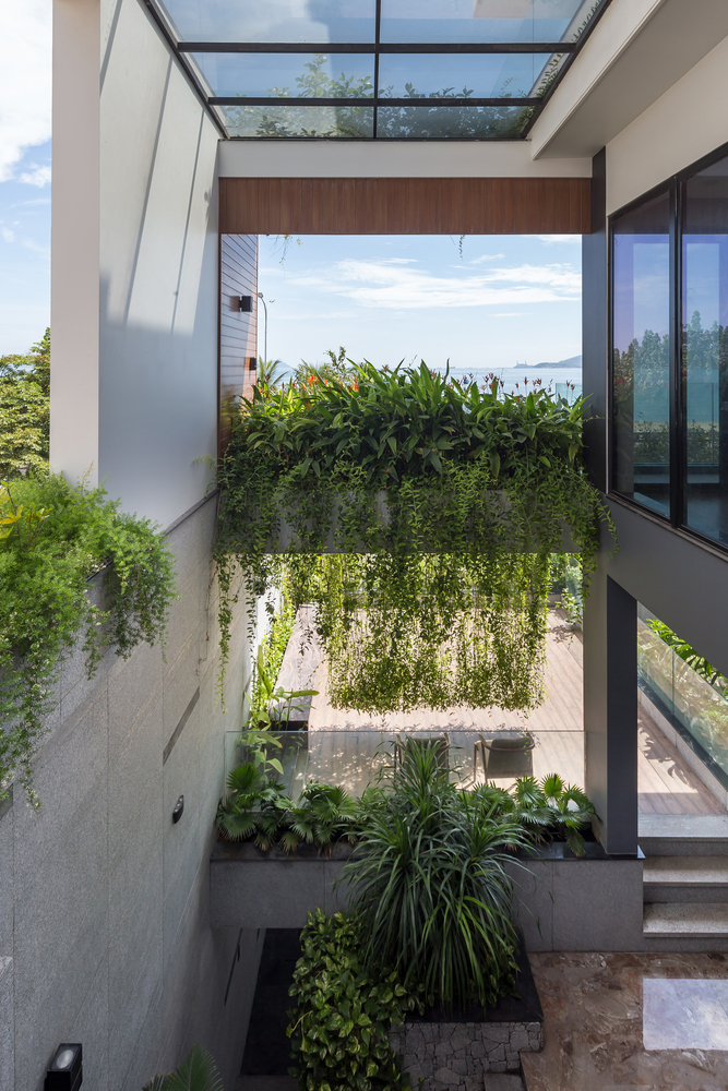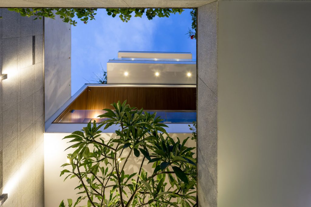 Cả không gian sống ngoài trời và trong nhà đều được đẩy ra phía trước để có thể tận hưởng trọn vẹn tầm nhìn tuyệt đẹp ra đại dương. Bên cạnh đó, các khoảng trống và cây trồng được bố trí xen kẽ để lấy sáng và gió biển ở bất kỳ góc nào trong nhà. Các không gian sinh hoạt trên tầng 2 được liên kết bằng hành lang cạnh khoảng trống, tạo cảm giác đón nắng, gió và hương biển của vịnh Đà Nẵng vào từng bước chân trong nhà.