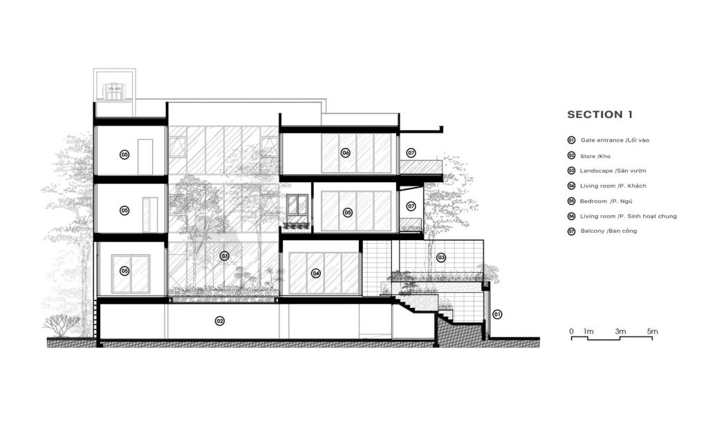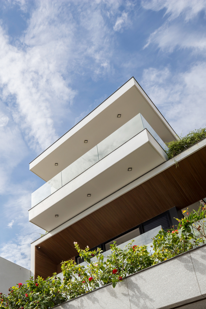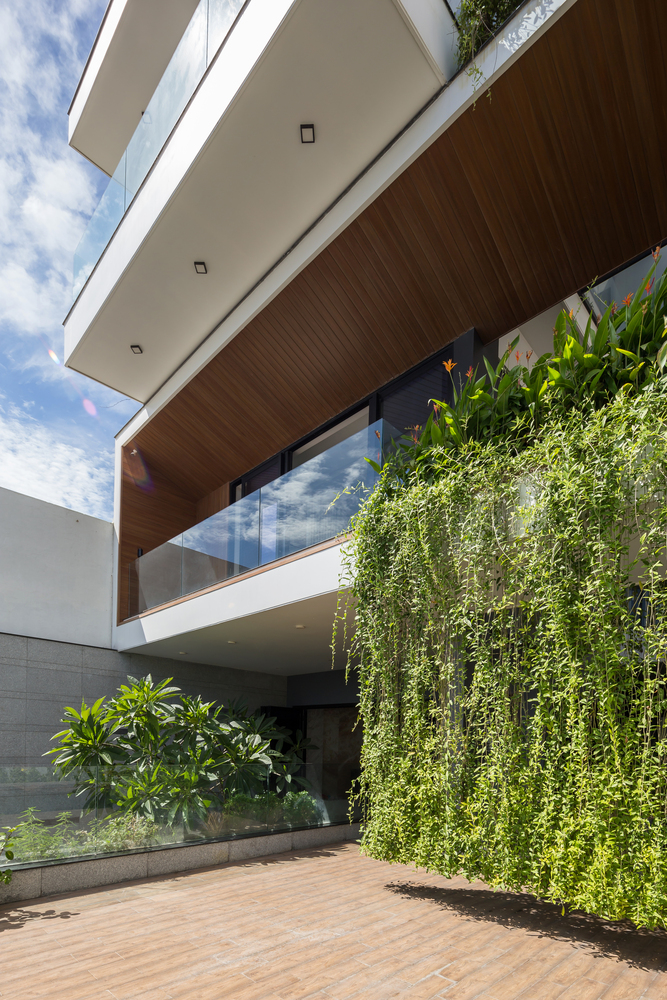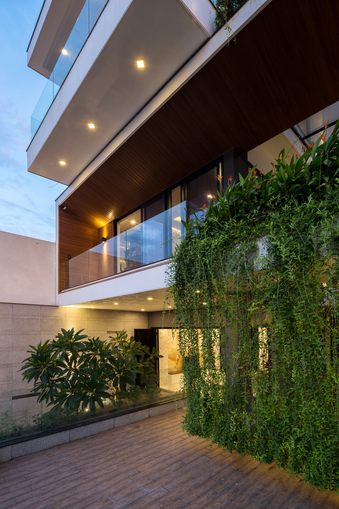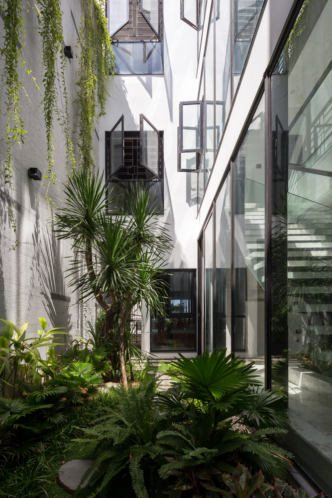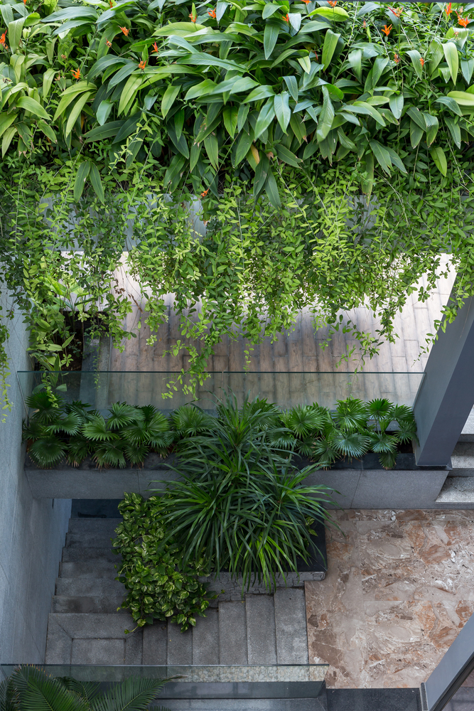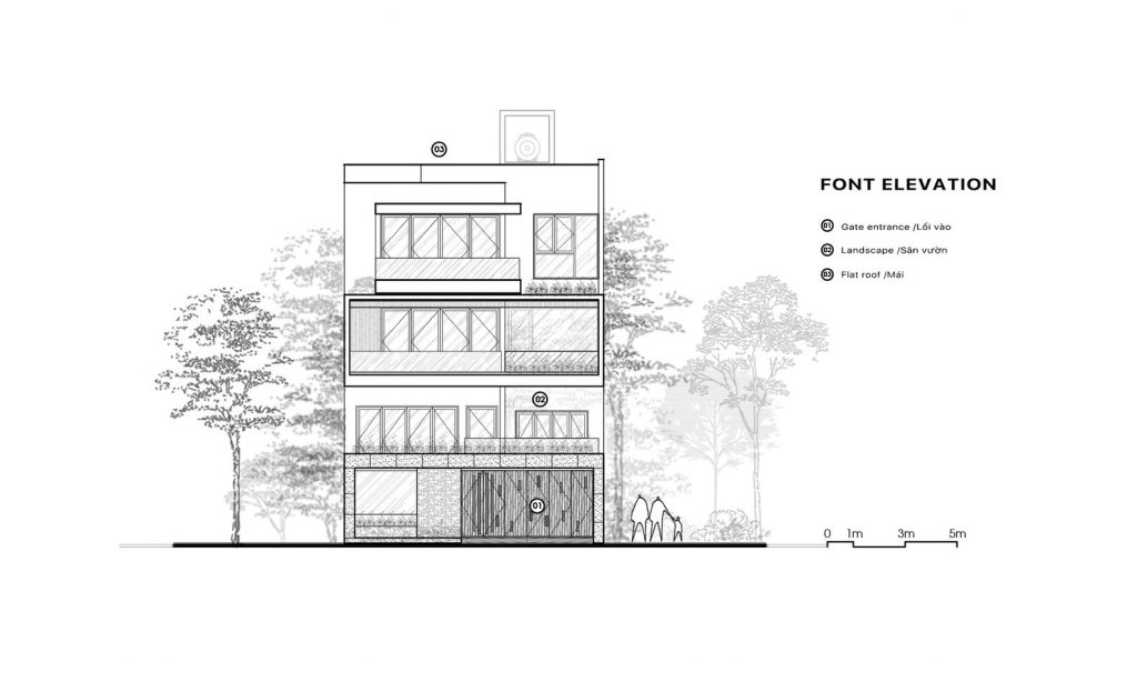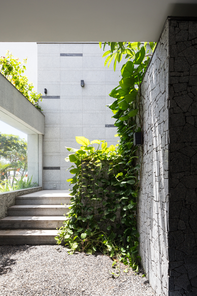 Cả không gian sống ngoài trời và trong nhà đều được đẩy ra phía trước để có thể tận hưởng trọn vẹn tầm nhìn tuyệt đẹp ra đại dương. Bên cạnh đó, các khoảng trống và cây trồng được bố trí xen kẽ để lấy sáng và gió biển ở bất kỳ góc nào trong nhà. Các không gian sinh hoạt trên tầng 2 được liên kết bằng hành lang cạnh khoảng trống, tạo cảm giác đón nắng, gió và hương biển của vịnh Đà Nẵng vào từng bước chân trong nhà.