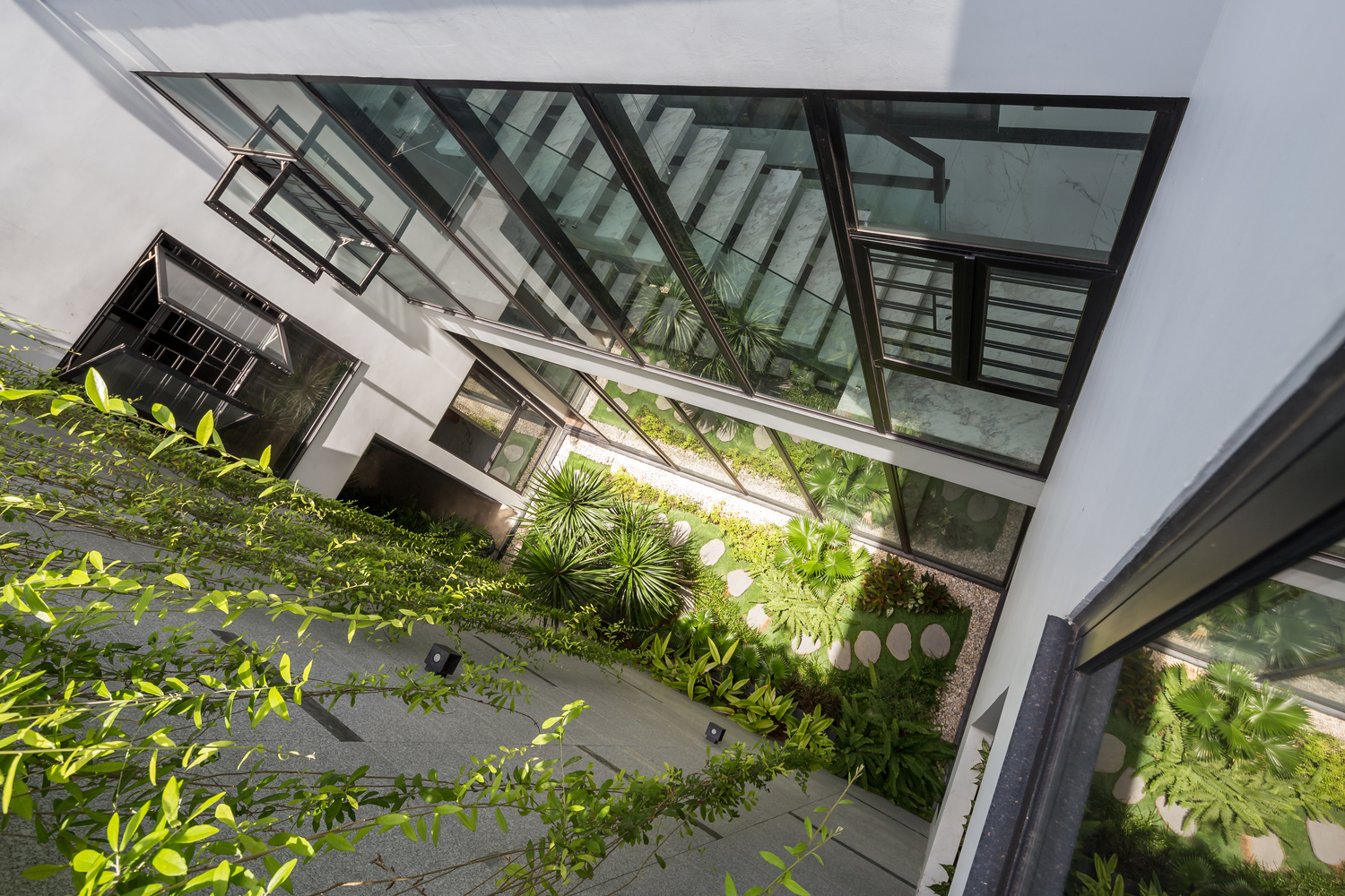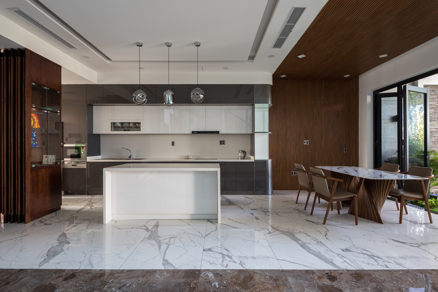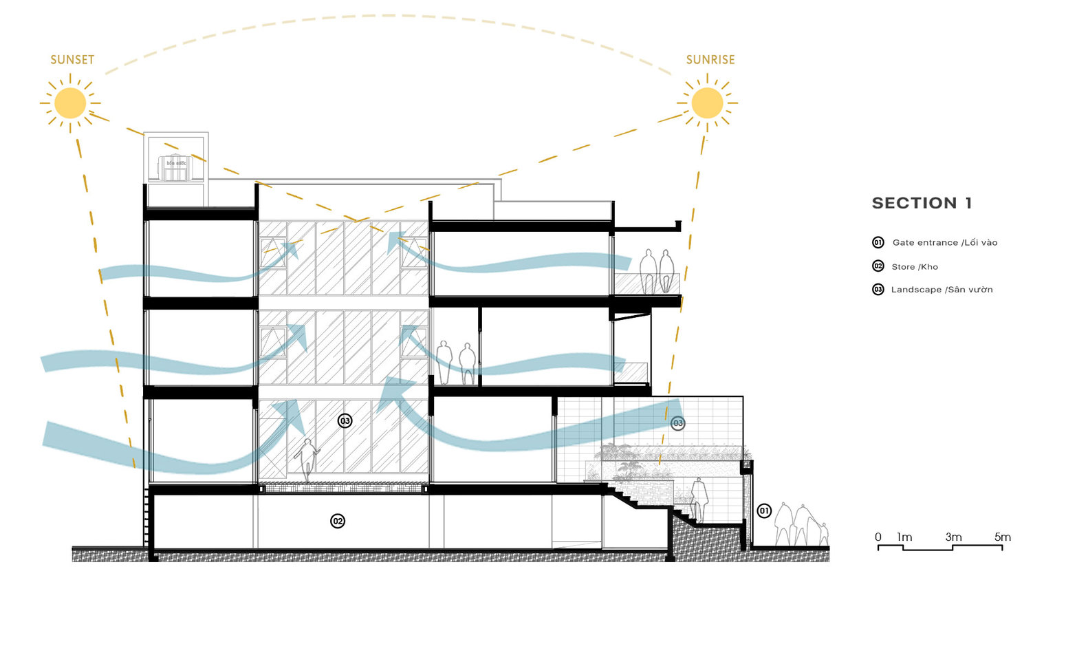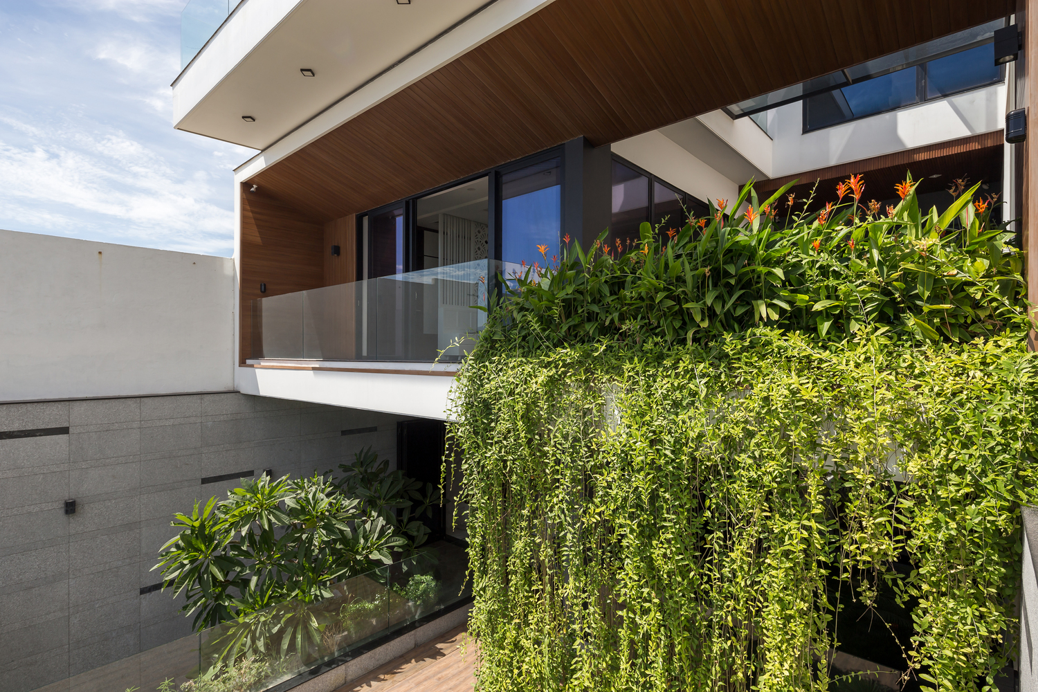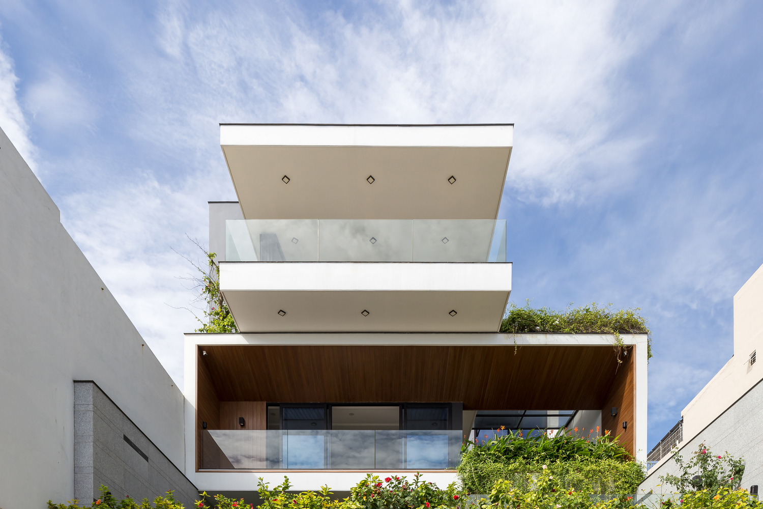 Cả không gian sống ngoài trời và trong nhà đều được đẩy ra phía trước để có thể tận hưởng trọn vẹn tầm nhìn tuyệt đẹp ra đại dương. Bên cạnh đó, các khoảng trống và cây trồng được bố trí xen kẽ để lấy sáng và gió biển ở bất kỳ góc nào trong nhà. Các không gian sinh hoạt trên tầng 2 được liên kết bằng hành lang cạnh khoảng trống, tạo cảm giác đón nắng, gió và hương biển của vịnh Đà Nẵng vào từng bước chân trong nhà.