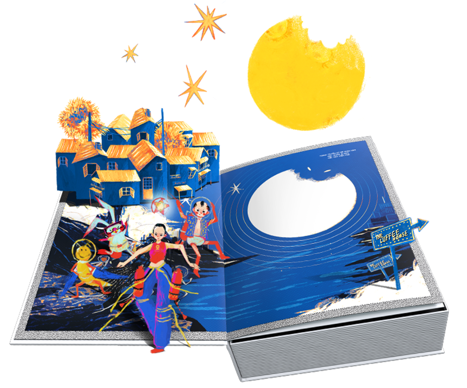 Lật mở quyển sách cũng là lúc bạn đang bước vào cánh cửa để rời khỏi hiện thực và cùng bước vào chuyến phiêu lưu của chú Cuội và đồng bọn qua những trang đồ hoạ sắc màu rực rỡ. Phải nói rằng, tạo hình nhân vật là một điểm sáng hấp dẫn của “The Tale of Cuội” xuyên suốt từ ấn phẩm đầu tiên đến nay. Bên cạnh “Hợp tác xã Trái Đất” gồm chú Cuội, chị Hằng, cây Đa, và Thỏ ngọc, phần 2 này sẽ có sự góp mặt các nhân vật khác như quái vật vũ trụ và bác Trâu – thợ bánh trứ danh hứa hẹn hành trình dẫn lối đến hương vị Trung Thu thêm thú vị.