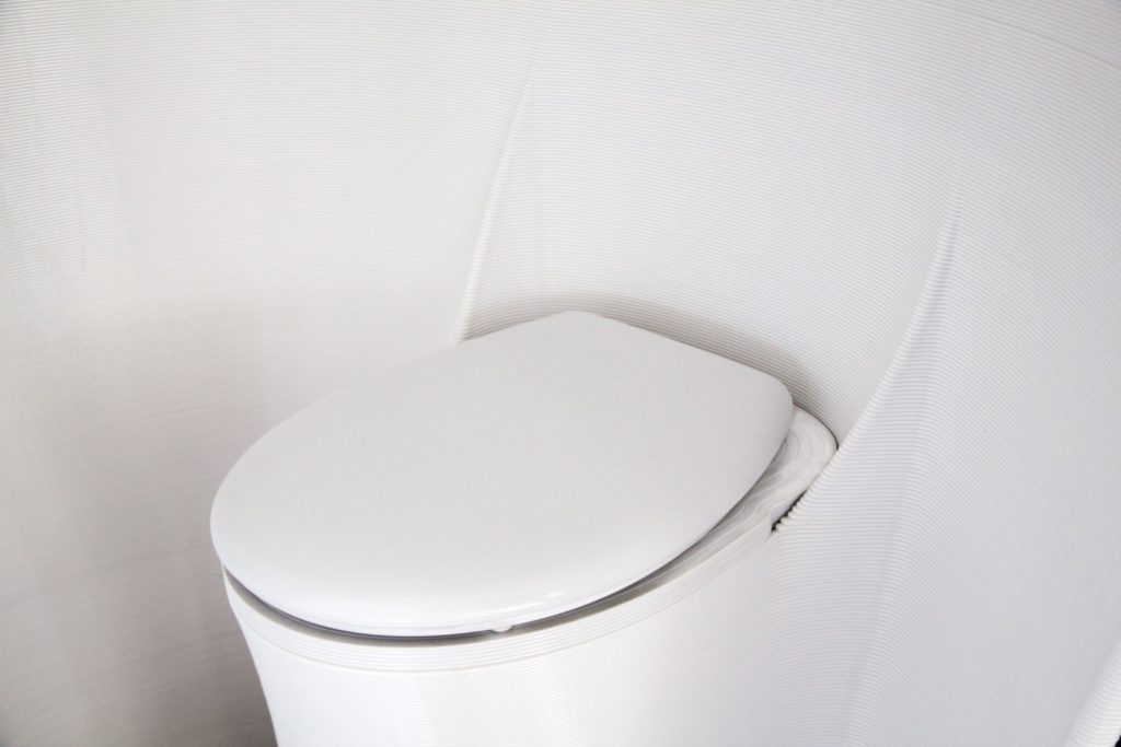 The Throne có một hệ thống xử lý chất thải khá thú vị. Do quá trình in 3D sẽ tạo ra các rãnh trên cấu trúc, vì vậy để hạn chế việc vi khuẩn sinh sôi, bệ toilet không được in 3D mà là một sản phẩm riêng được lắp vào với khả năng chuyển hướng nước tiểu còn chất rắn thì được giữ lại ủ để sau đó có thể sử dụng như phân bón.