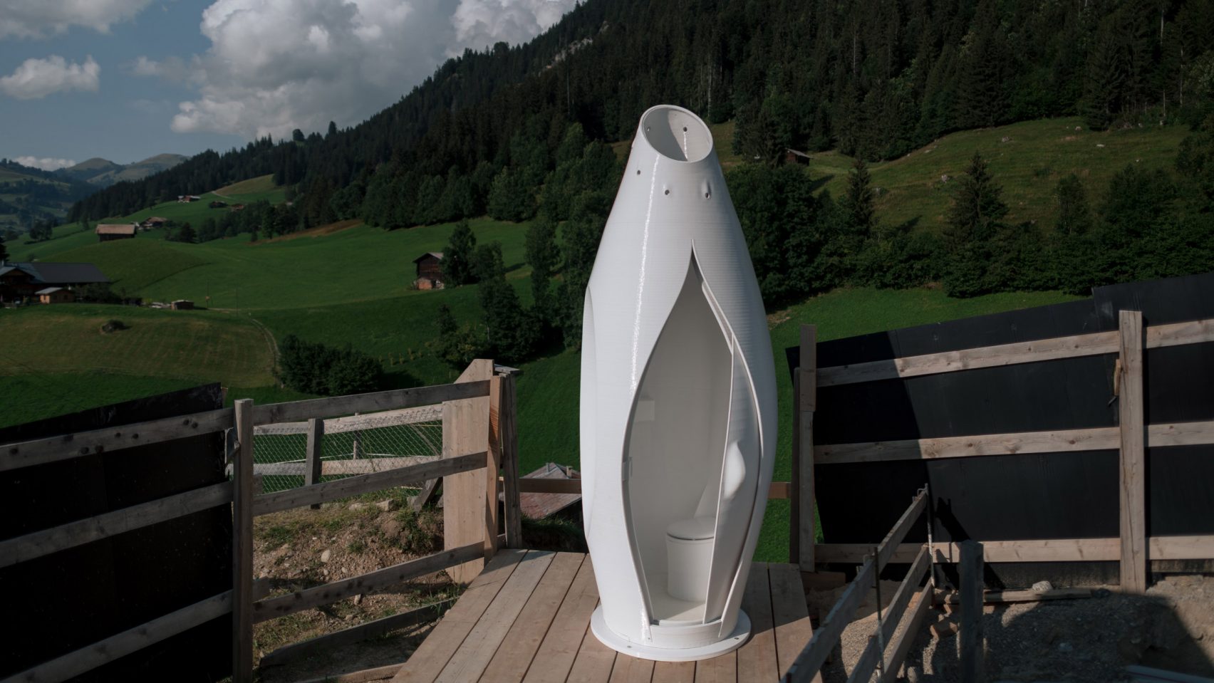 The Throne có một hệ thống xử lý chất thải khá thú vị. Do quá trình in 3D sẽ tạo ra các rãnh trên cấu trúc, vì vậy để hạn chế việc vi khuẩn sinh sôi, bệ toilet không được in 3D mà là một sản phẩm riêng được lắp vào với khả năng chuyển hướng nước tiểu còn chất rắn thì được giữ lại ủ để sau đó có thể sử dụng như phân bón.
