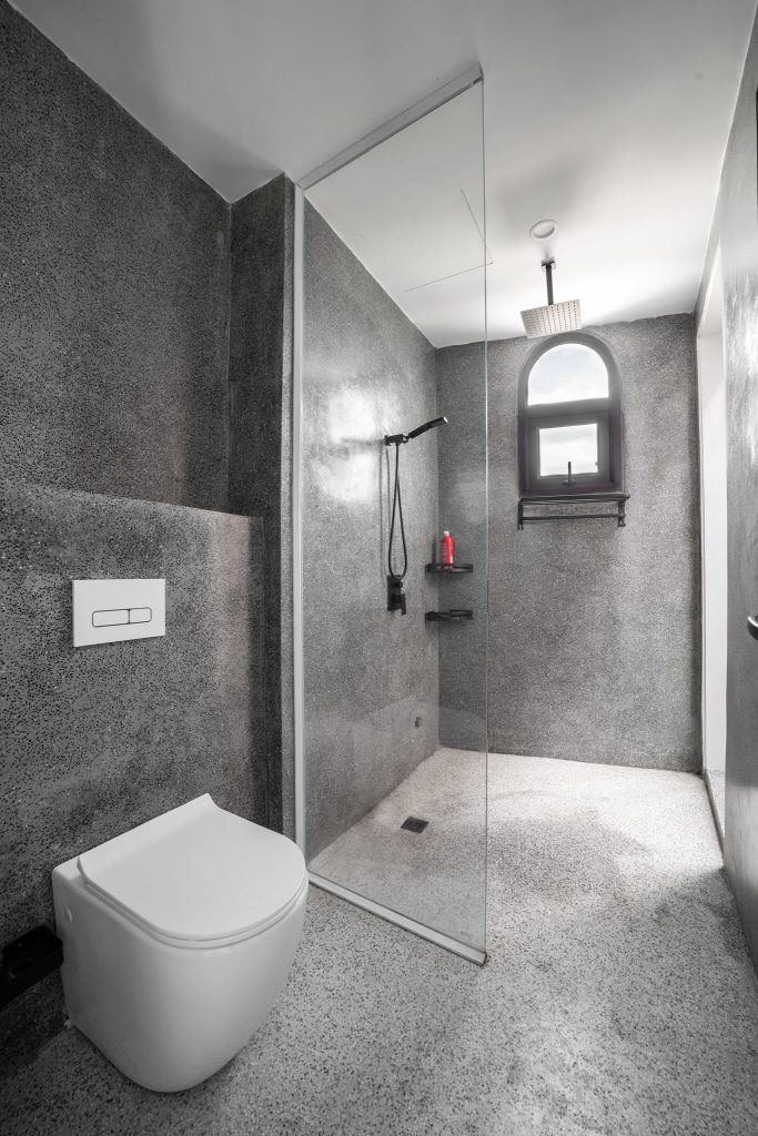 Chủ nhà là người có một sự yêu thích với các loài cây cỏ, vật liệu thô mộc, đồ thủ công do đó gạch trần, bê tông trần, đá mài, gỗ tự nhiên, là những vật liệu chủ đạo được sử dụng cho công trình. Có thể nói ngôi nhà là đại diện cho phong cách của những con người sống trong đó.