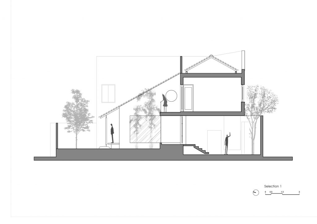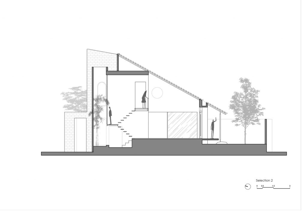 Đề bài của chủ đầu tư tạo rất nhiều bất ngờ và cảm hứng cho Dom Architect với mong muốn xây dựng kiểu không gian hướng nội cho loại hình nhà phố, thu mình vào bên trong giữ khoảng cách với bên ngoài gần gũi với thiên nhiên. Một vài cây xanh trên khu đất đã ở đó từ lâu và cần được giữ lại, đây cũng là nhiệm vụ quan trọng với nhóm KTS.