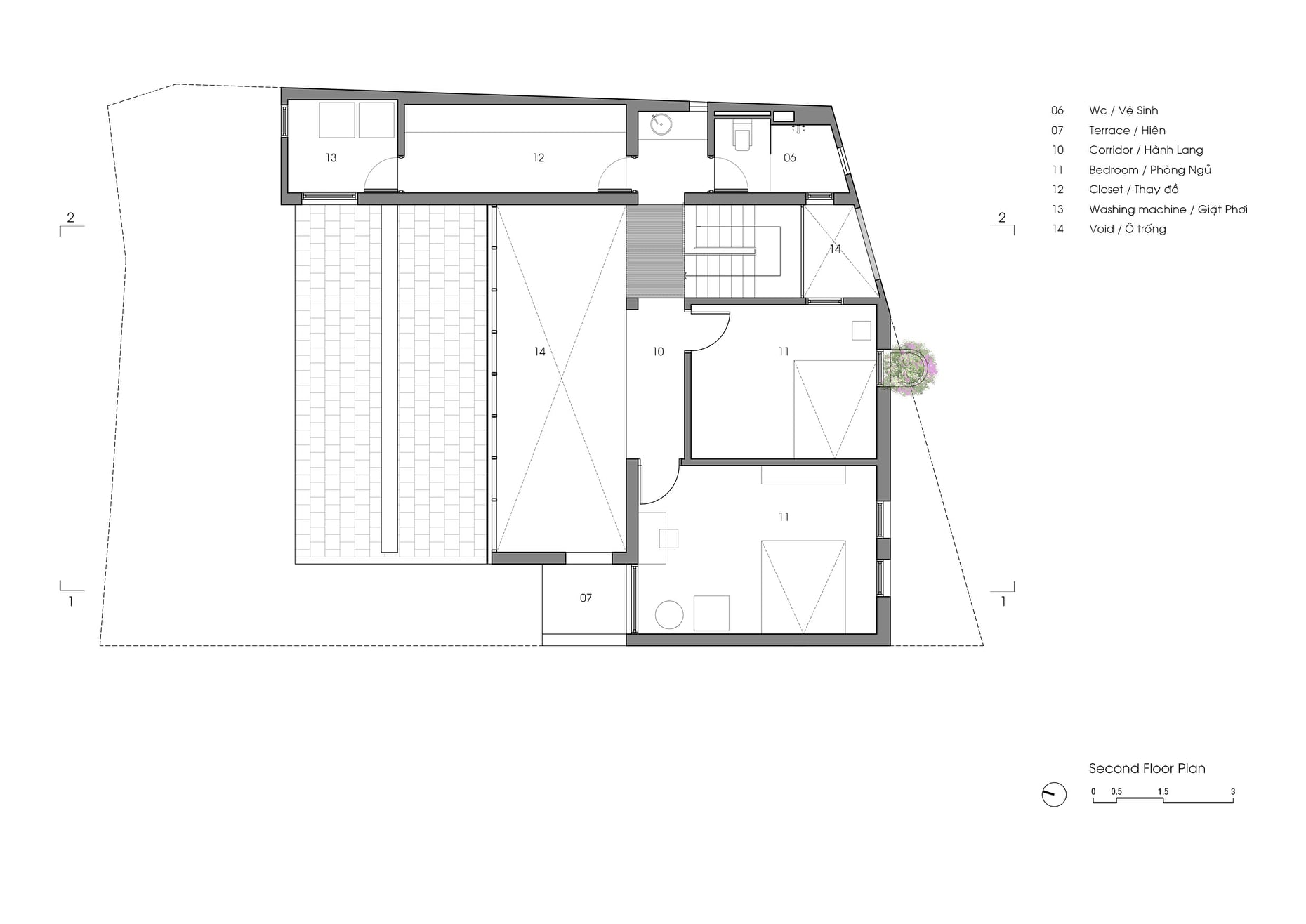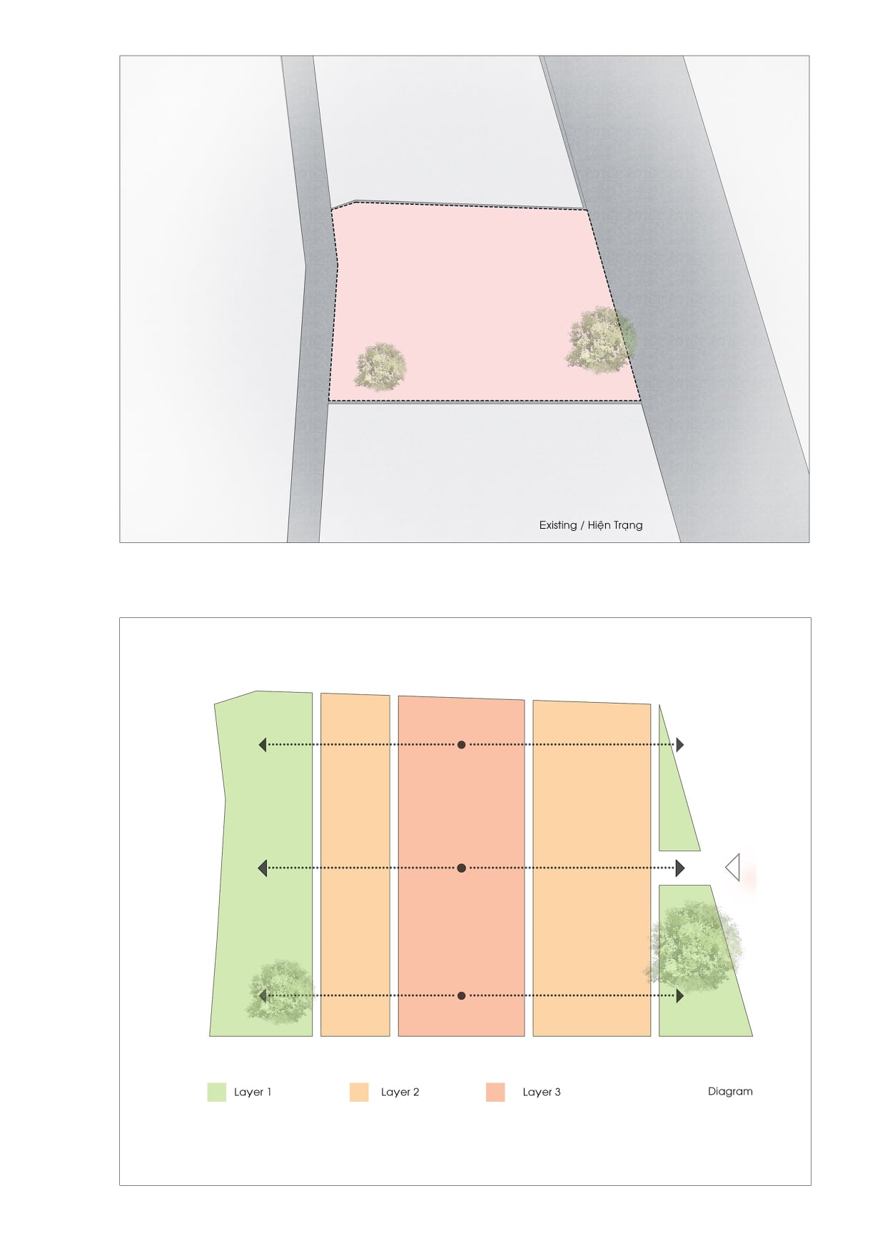 Đề bài của chủ đầu tư tạo rất nhiều bất ngờ và cảm hứng cho Dom Architect với mong muốn xây dựng kiểu không gian hướng nội cho loại hình nhà phố, thu mình vào bên trong giữ khoảng cách với bên ngoài gần gũi với thiên nhiên. Một vài cây xanh trên khu đất đã ở đó từ lâu và cần được giữ lại, đây cũng là nhiệm vụ quan trọng với nhóm KTS.