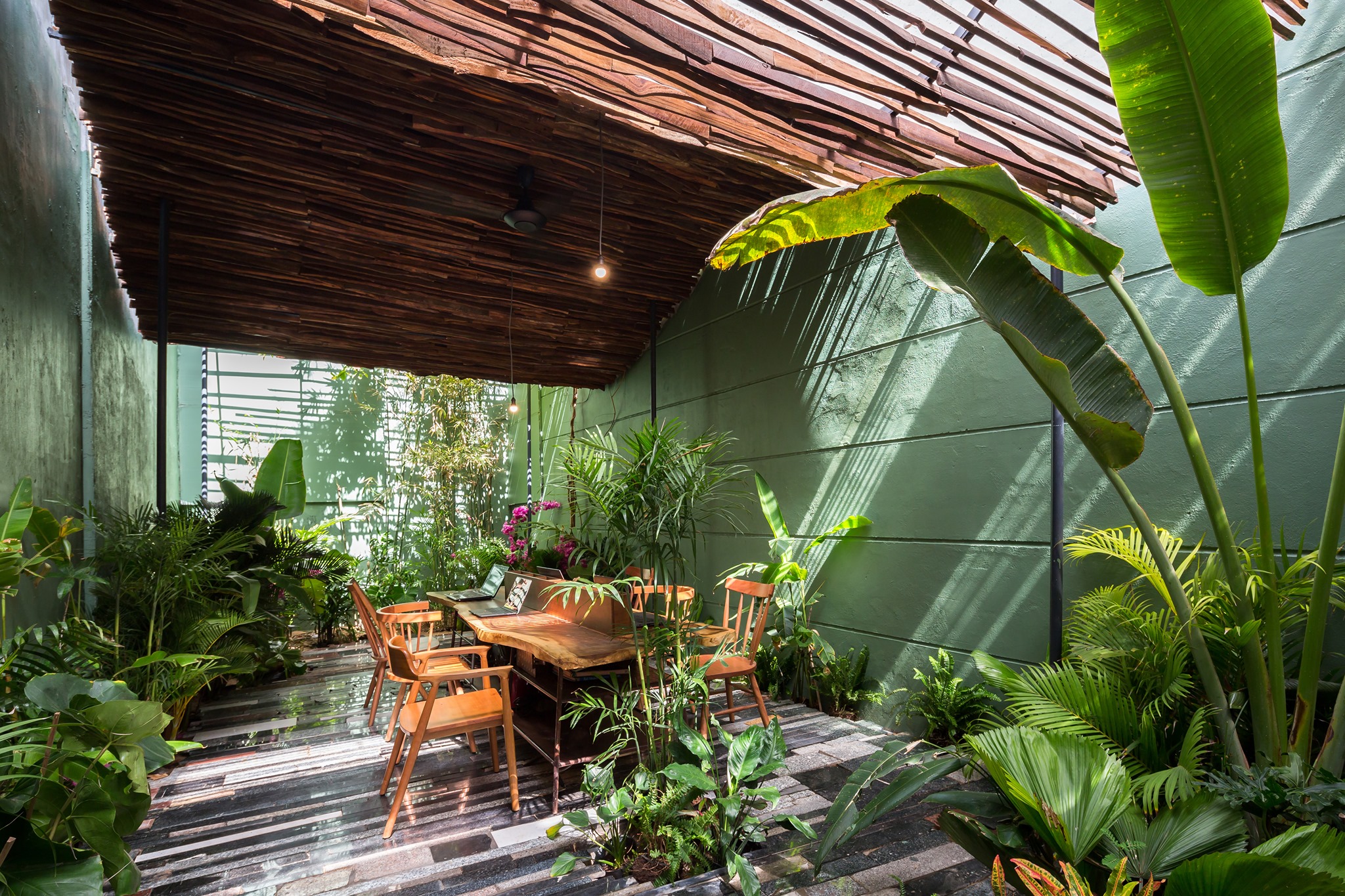 Hiện trạng là khu đất 4x20m bỏ hoang, bị kẹp giữa 6 căn nhà phố. Được thuê lại 5 năm để làm văn phòng kiến trúc và thi công đồ nội thất gỗ.