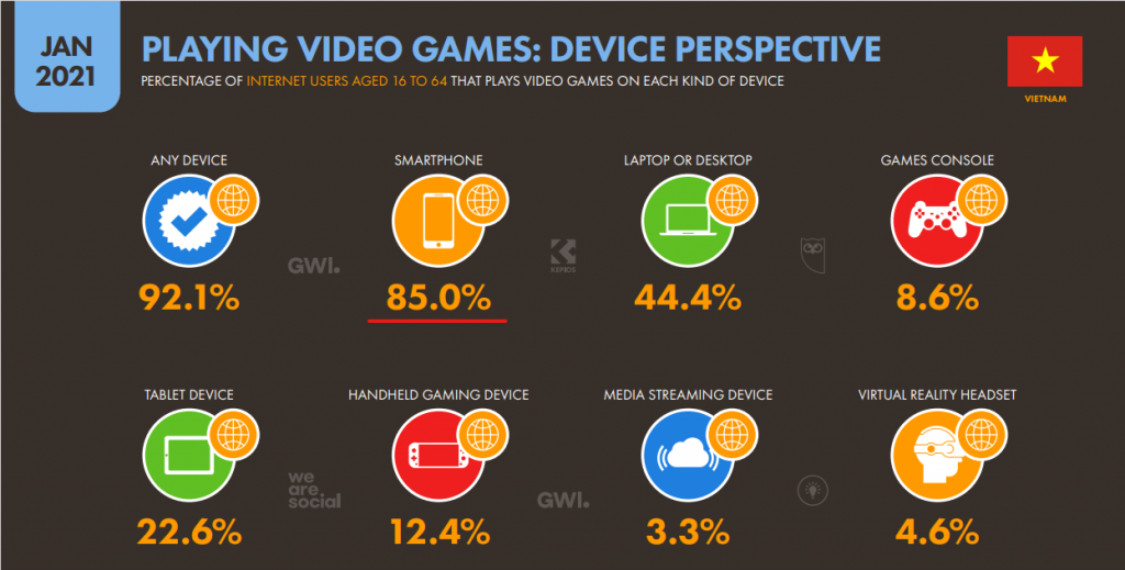 Tại Việt Nam có khoảng 3,99 triệu game thủ và hơn 60% ở độ tuổi từ 18 đến 30, nhất là ở thời kỳ COVID, lượng người chơi game trực tuyến ở Việt Nam tăng đột biến, với mức tăng 40% về lượt tải xuống game trên thiết bị di động ở thời điểm trước và sau Tết 2020 so với cùng kỳ năm 2019 (số liệu từ Vietnam Briefing).
