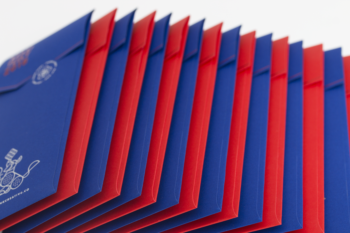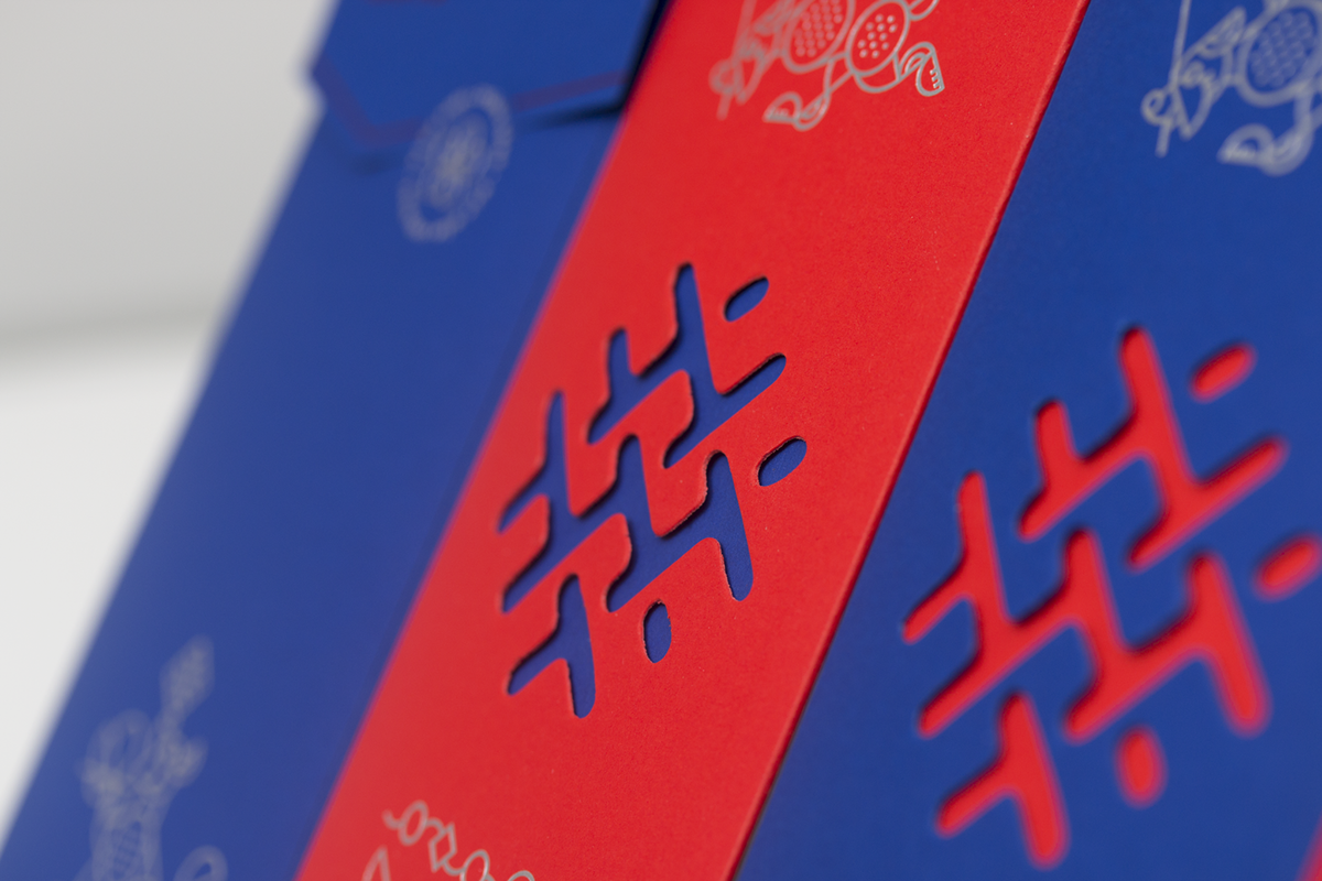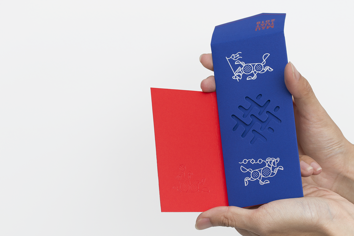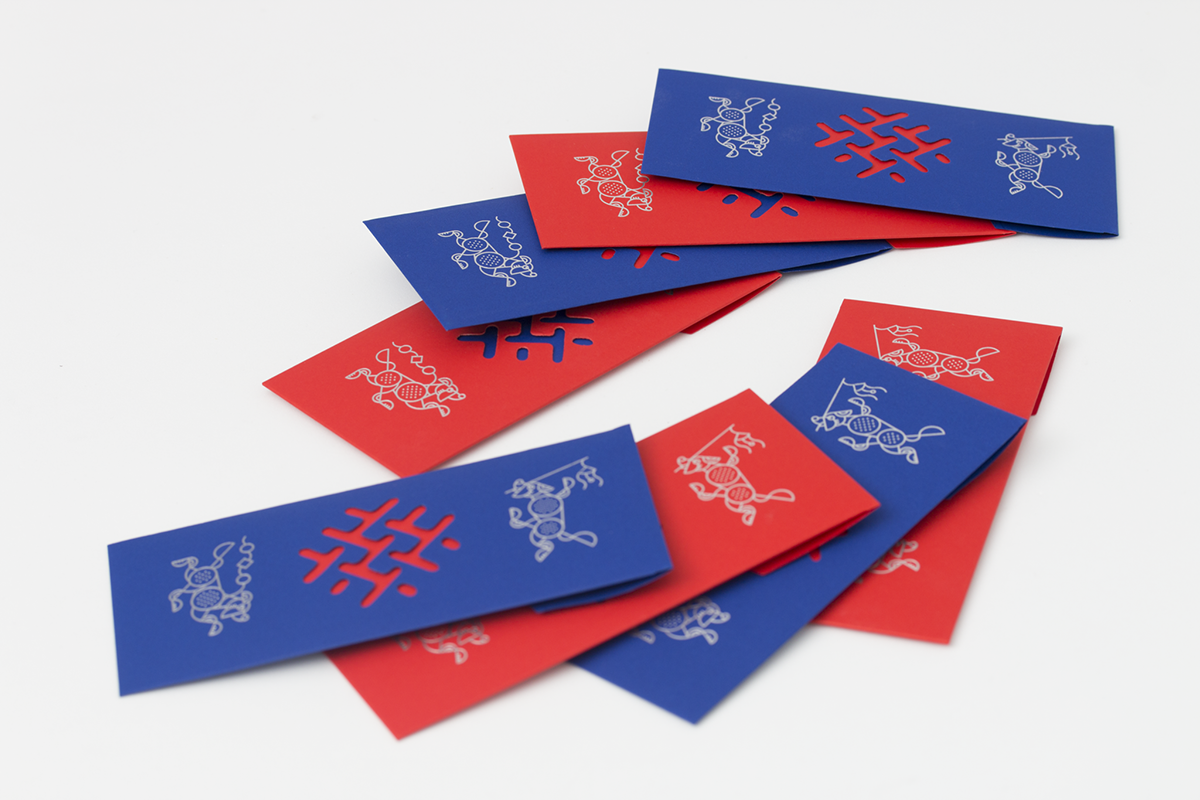 Blank Studio muốn tạo ra một thiết kế “bao đỏ” theo một cách mới, hiện đại nhưng truyền thống, sang trọng nhưng thân thiện với hình thức đặc biệt, kỹ thuật in hạn chế và lựa chọn vật liệu cẩn thận. Bạc, đỏ, đóng đinh trong suốt và die-cut được ứng dụng, kết hợp tạo ra một thiết kế độc đáo.