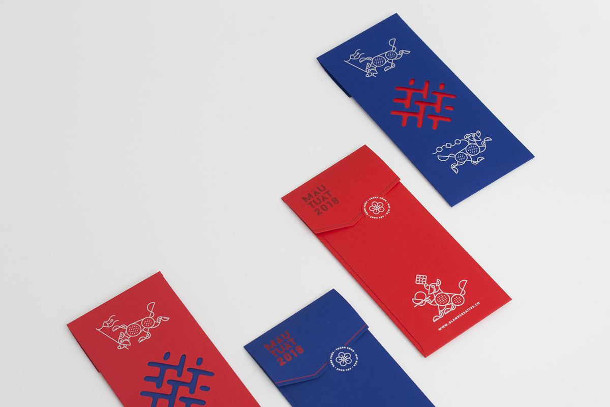 Nhân dịp năm mới, Blank Studio giới thiệu bộ thiết kế bao lì xì Tết Mậu Tuất đậm chất truyền thống nhưng không kém phần sang trọng, hiện đại. Bộ phong bao lì xì được thiết kế trang nhã và thi công một cách tỉ mỉ với các chất liệu khác nhau.