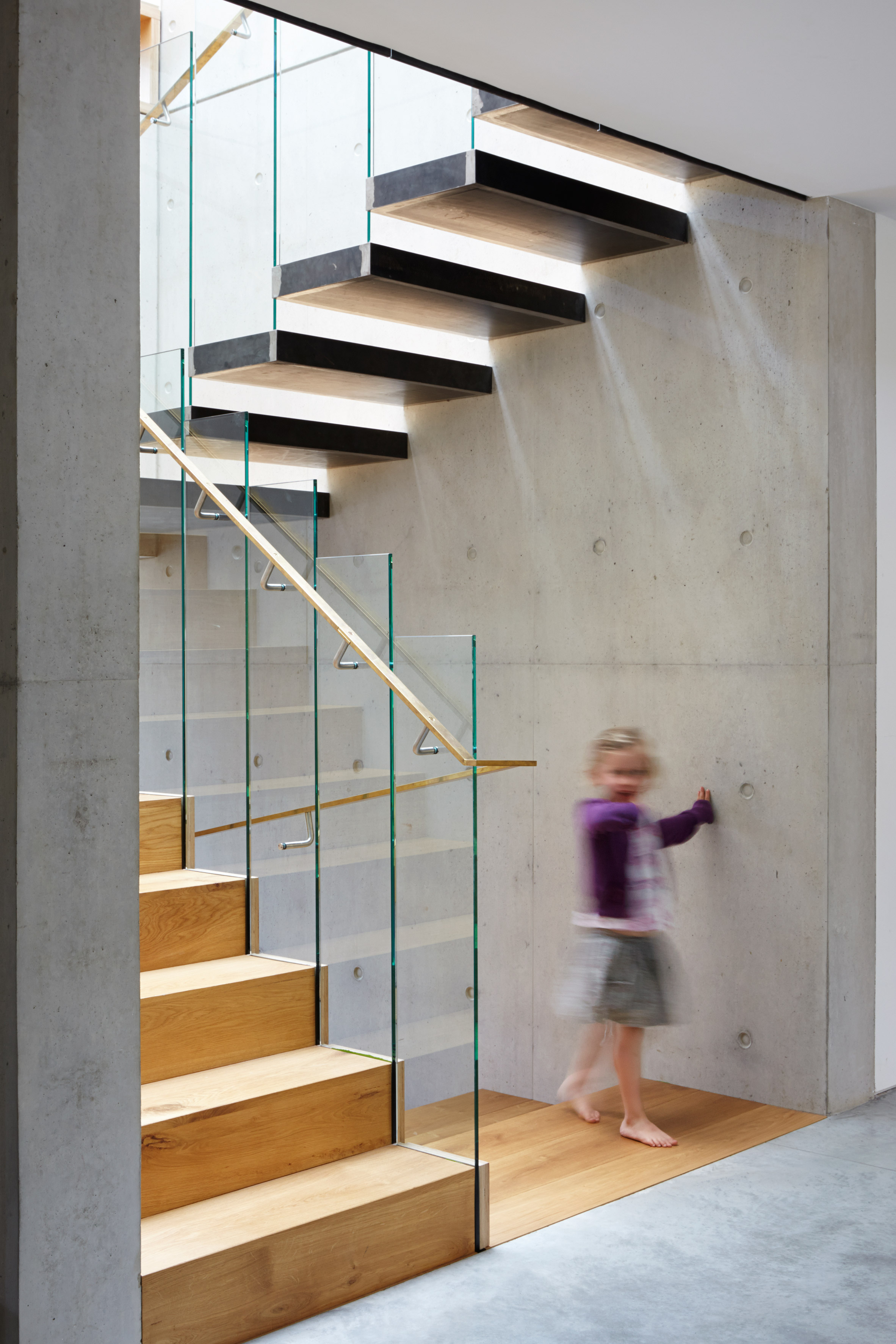 Phần dưới được tạo thành từ sự kết hợp giữa bê tông woofgrain và thủy tinh.