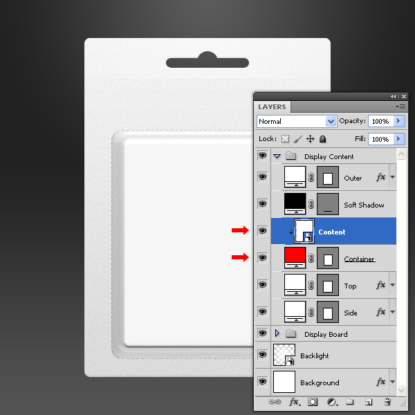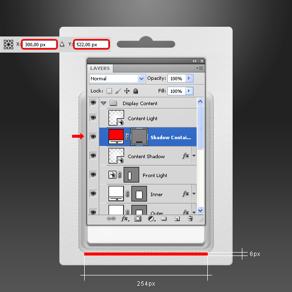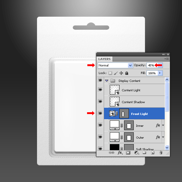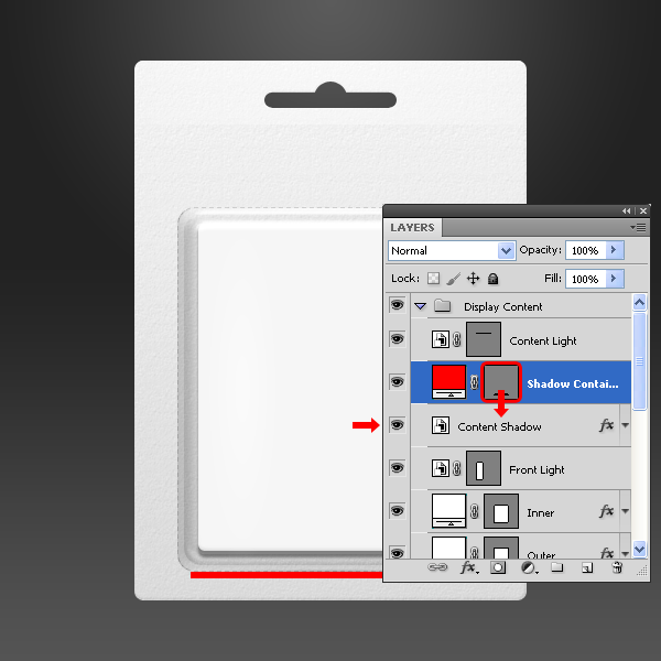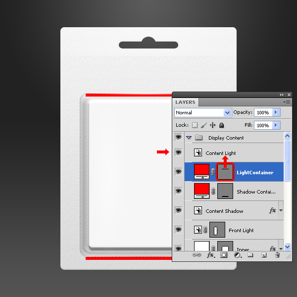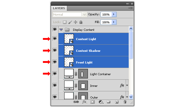 Trong nhóm layer “Display Content” đặt 3 layer “Front Light”, “Content Shadow” và “Content Light” nằm lên trên layer “Light Container”.