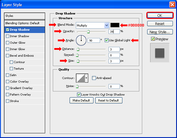 Chọn layer “Container”, vào Layer > Layer Style > Blending Options và áp dụng một Drop Shadow với các thiết lập sau.